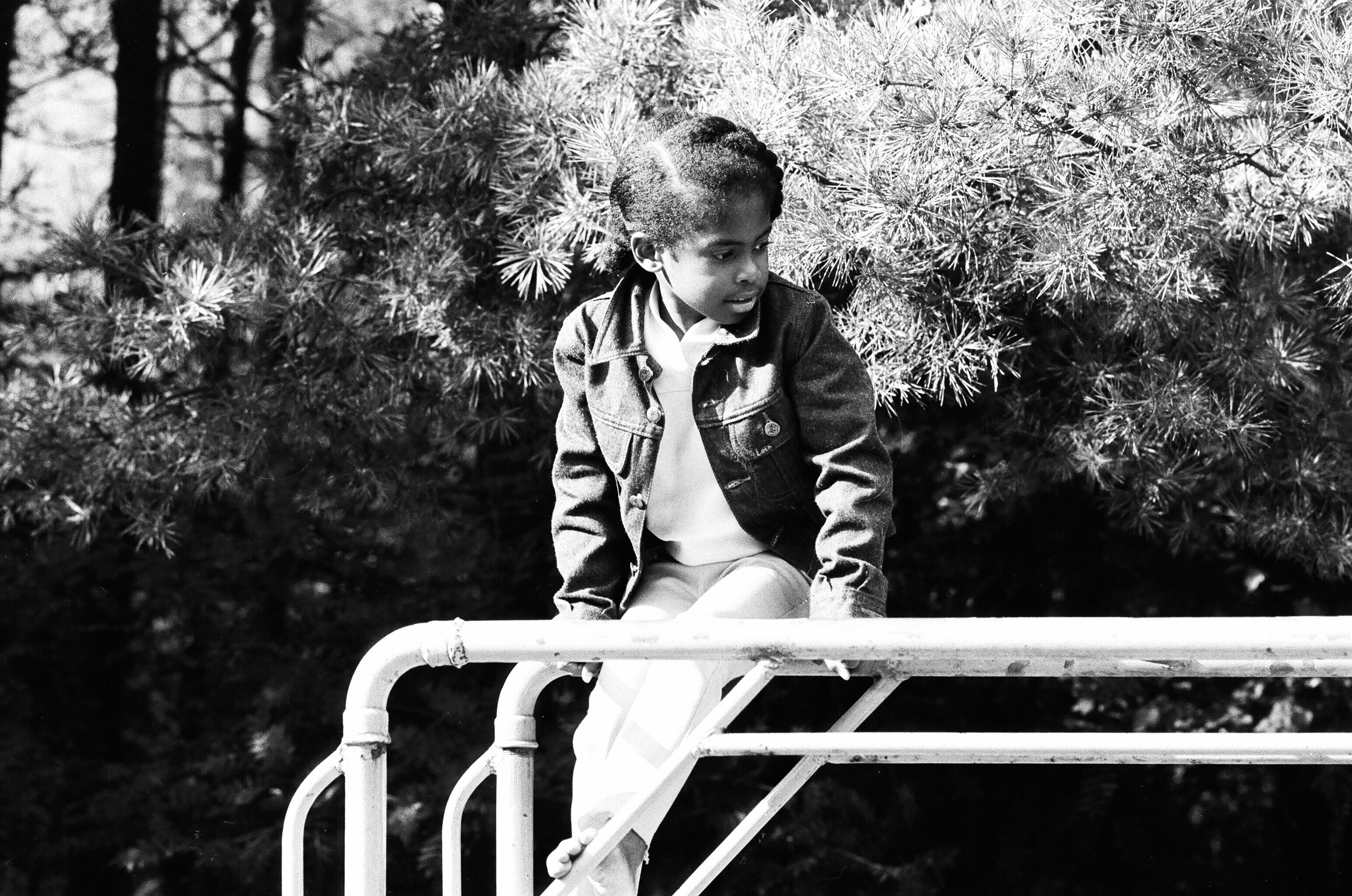 Een zwartwitfoto van een klein kind dat helpt bij he...