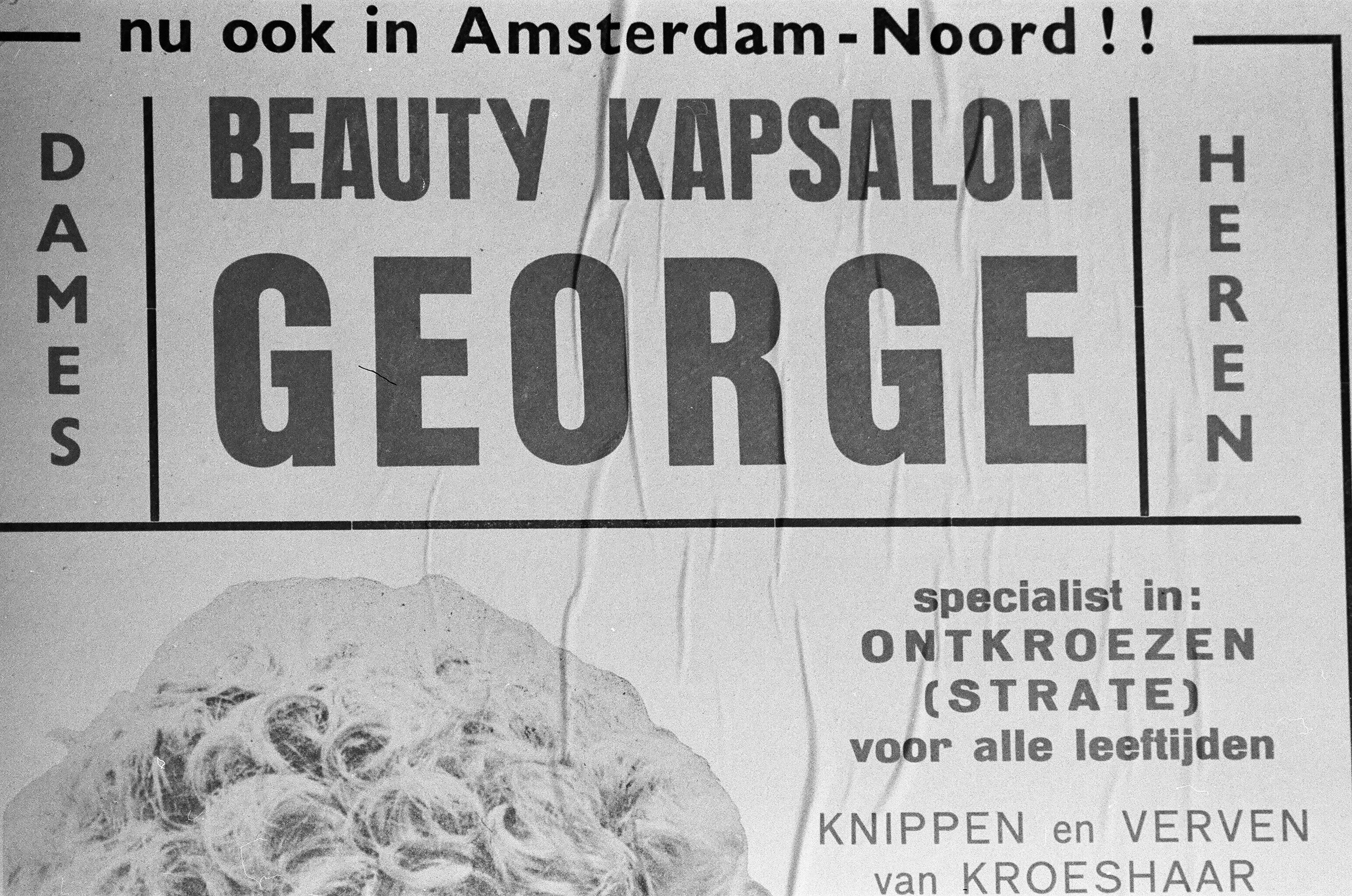 Detail van een aanplakbiljet van Beauty kapsalon Geo...