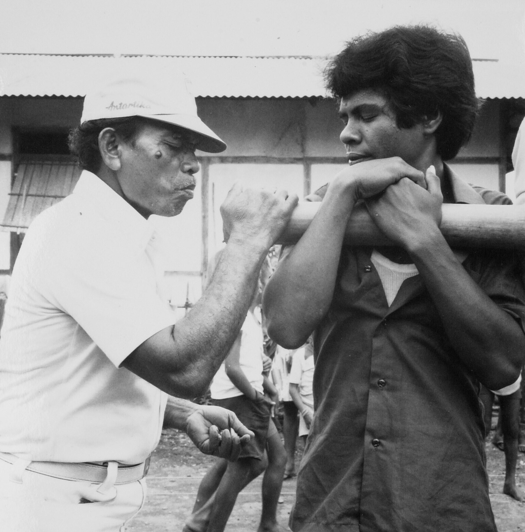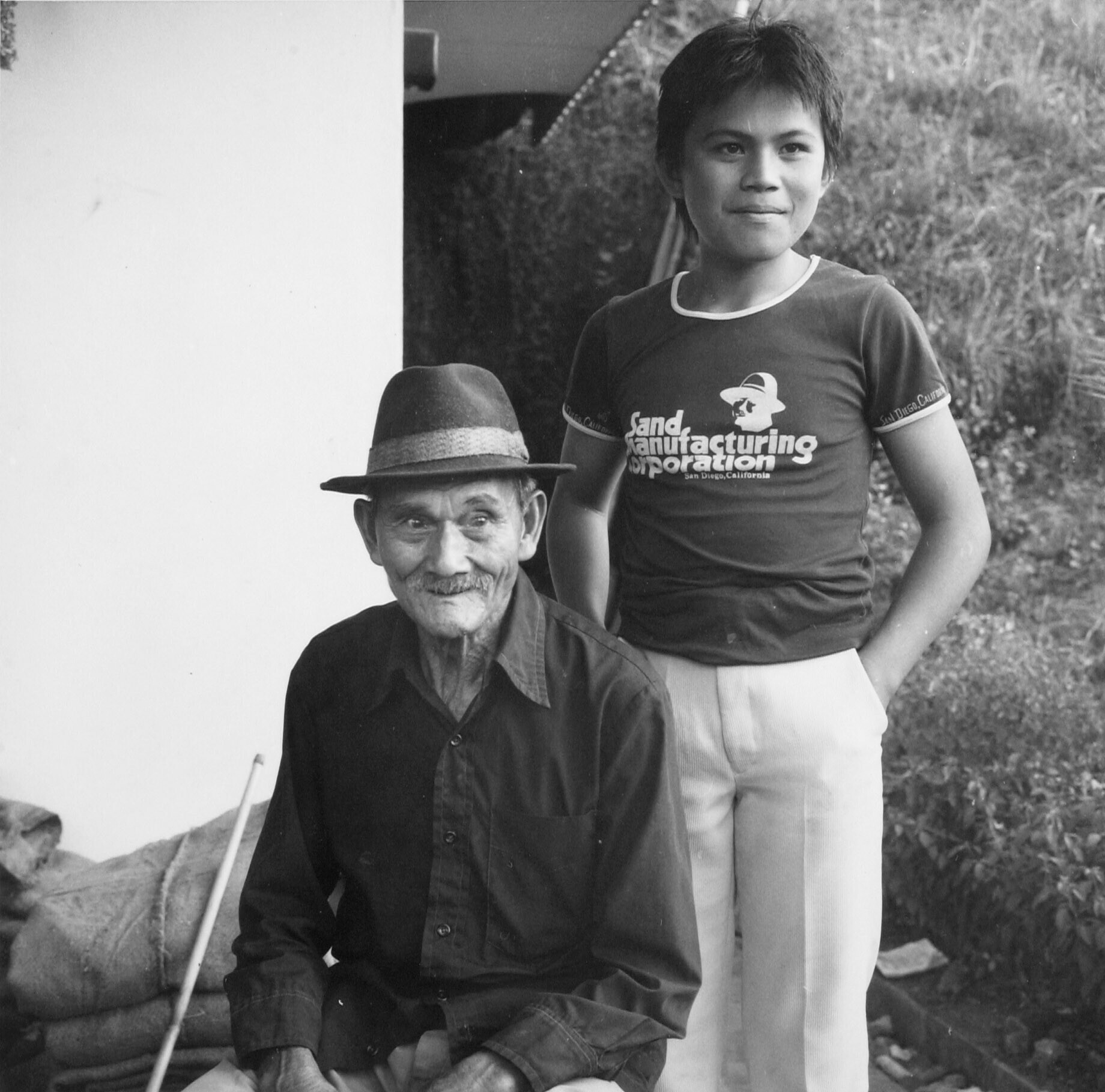 Portret van een man uit Manadon met zijn kleinzoon