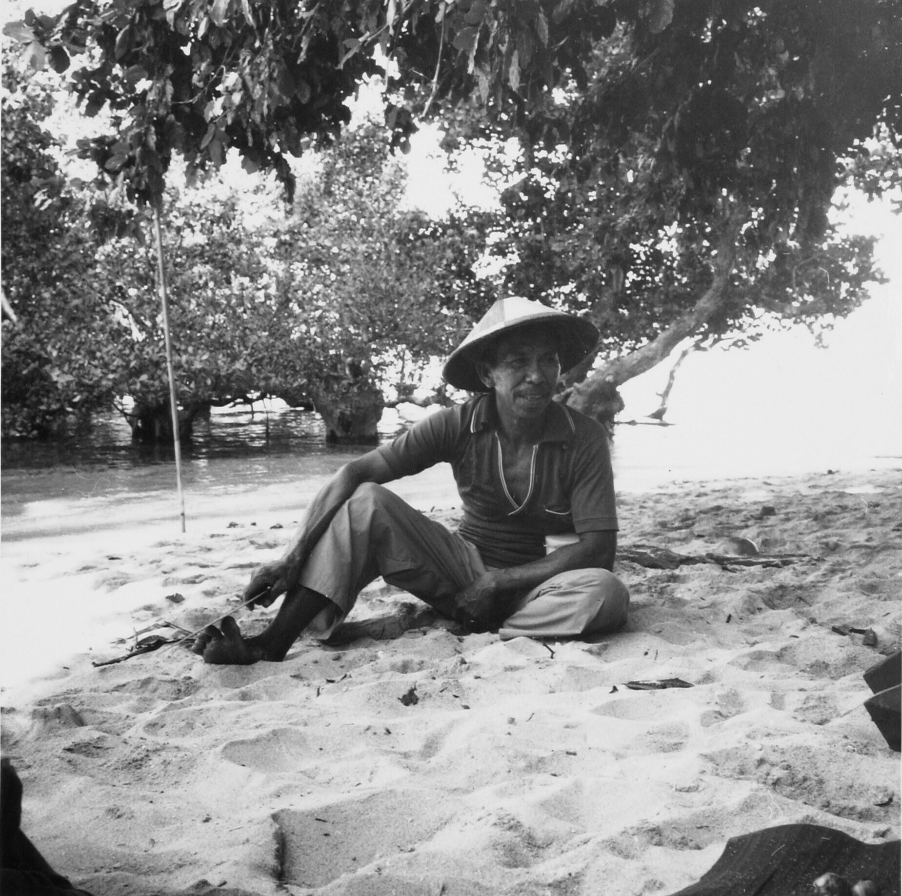 Portret van een visser op het strand van het eiland ...