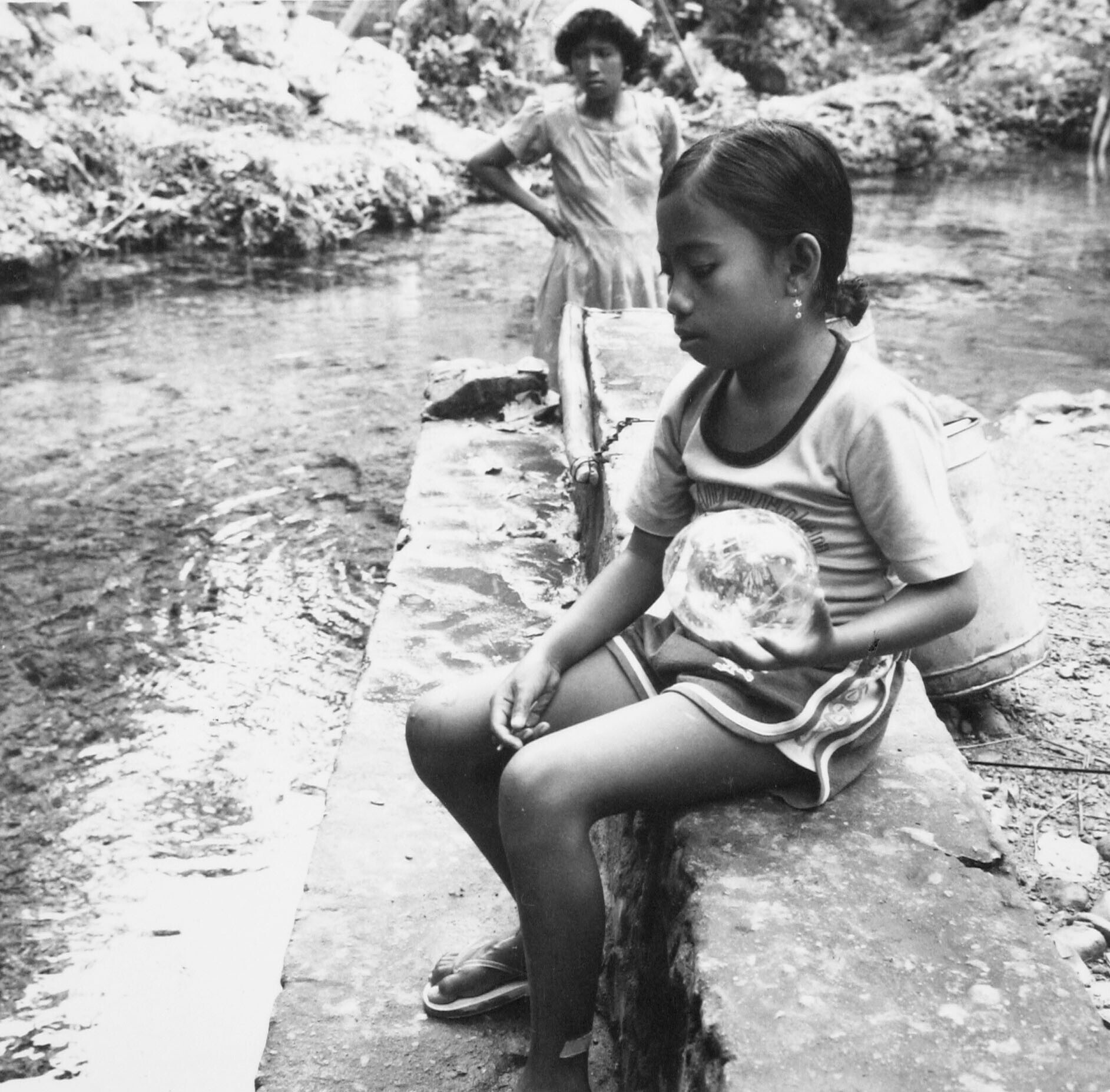 Meisje op de rand van het bassin met de heilige alen...