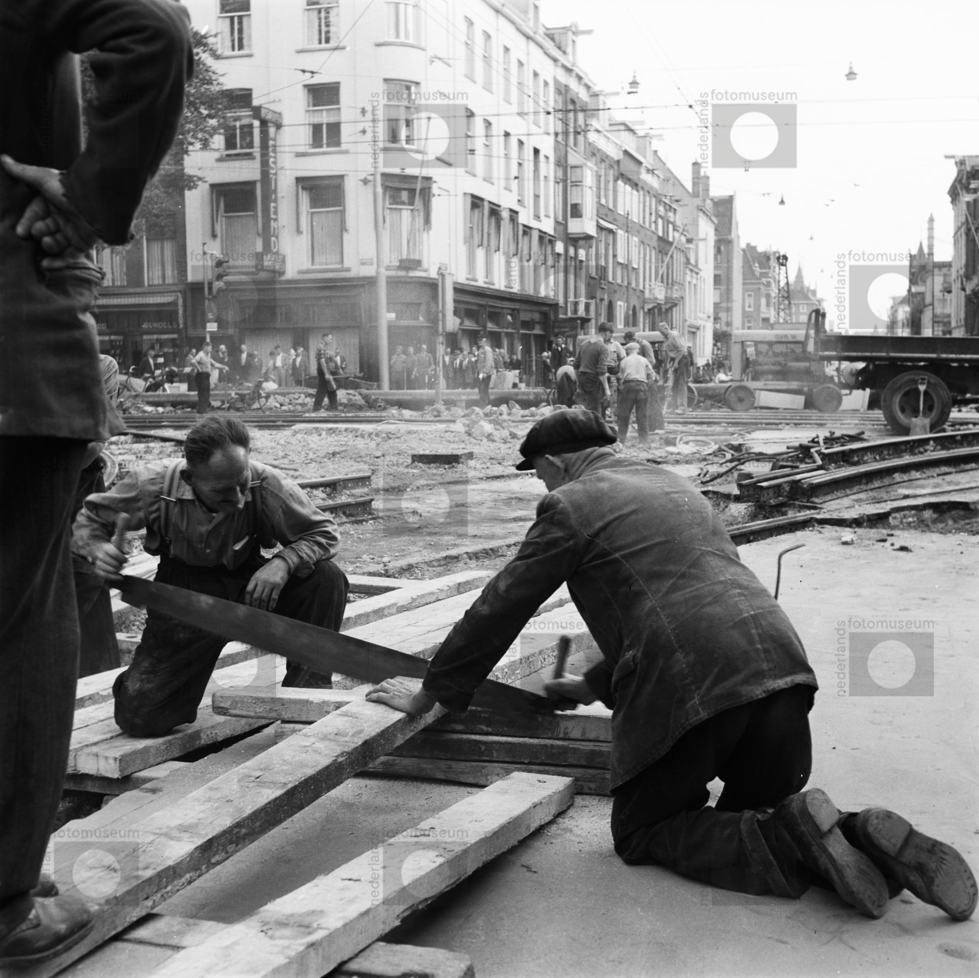 Amsterdam. Van Baerlestraat. Vondelbrug repareren do...