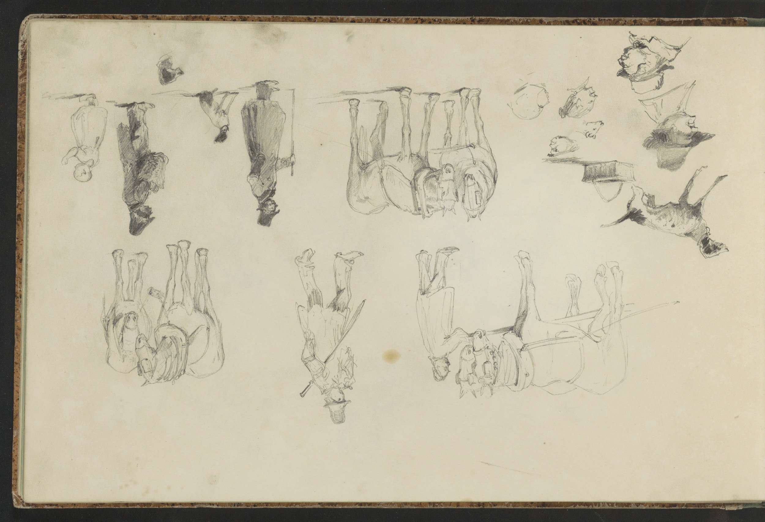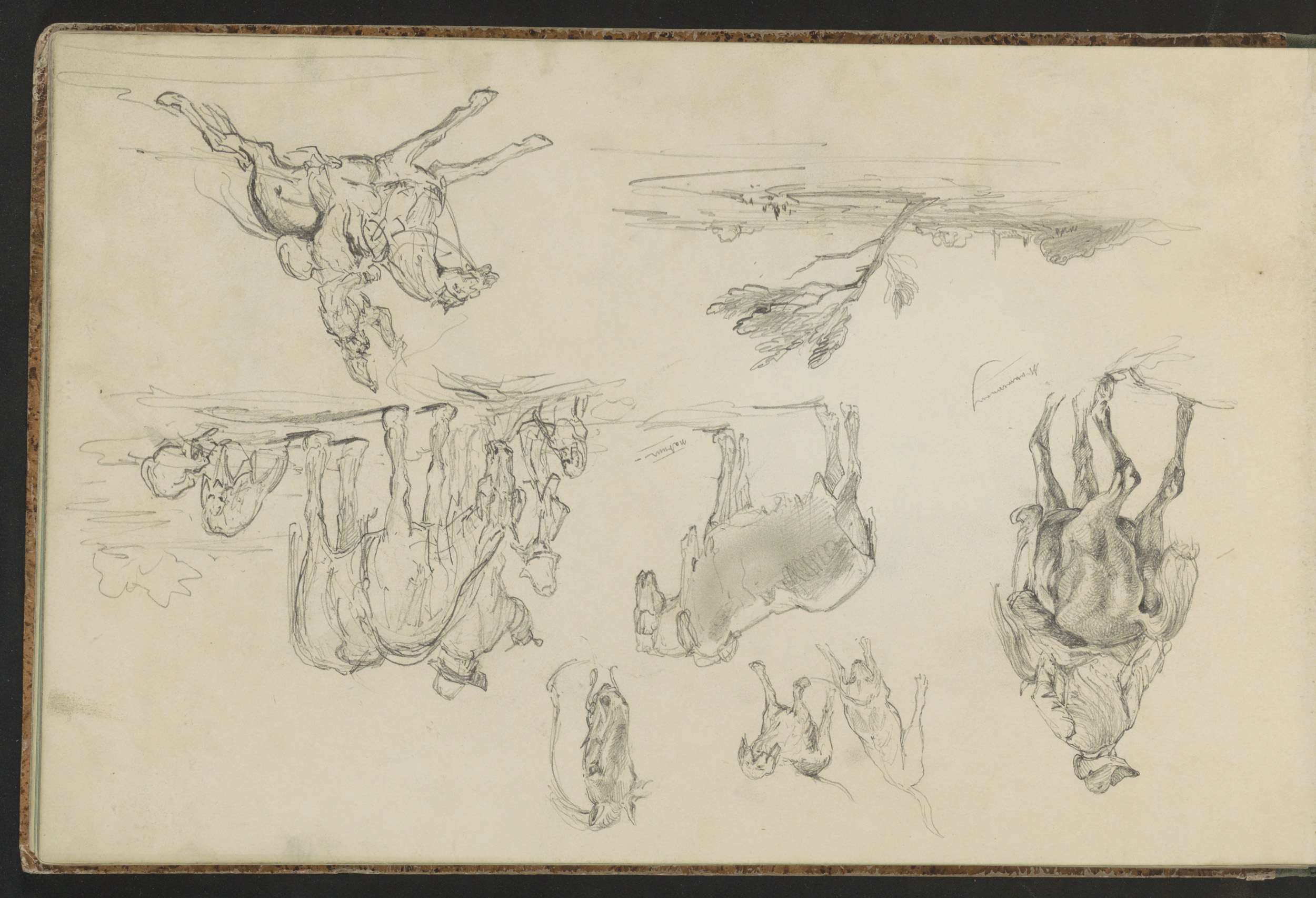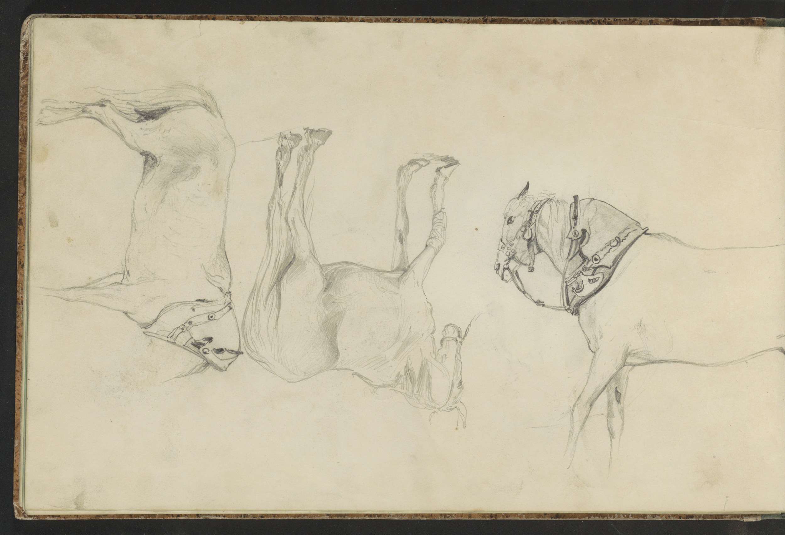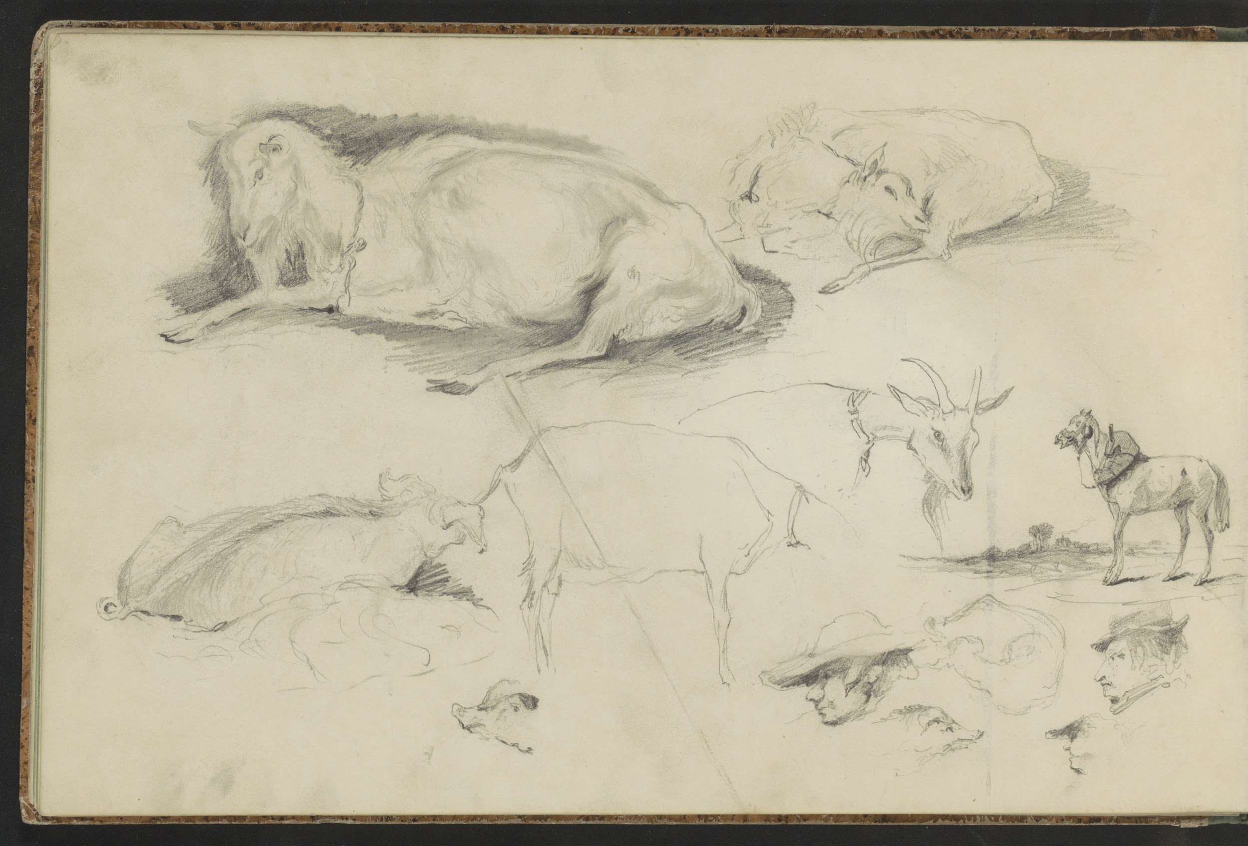 Vrouwen- en mannenfiguren, honden, paarden en een ru...
