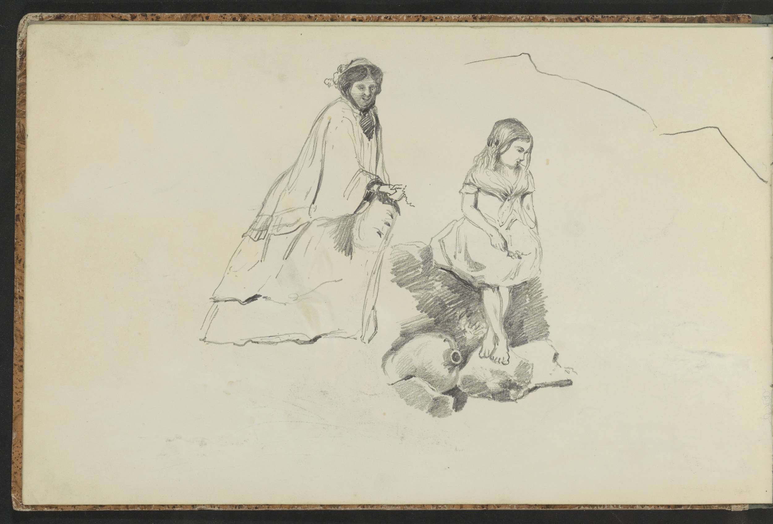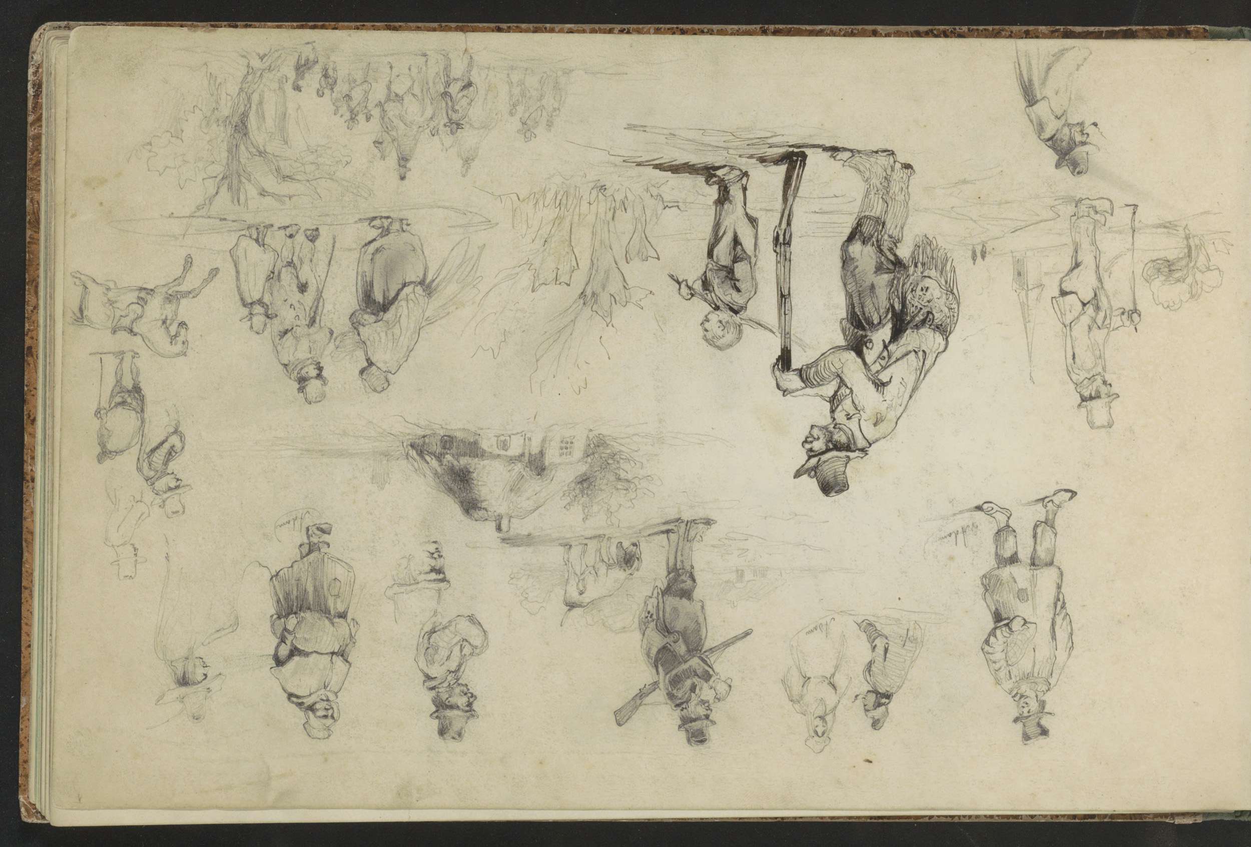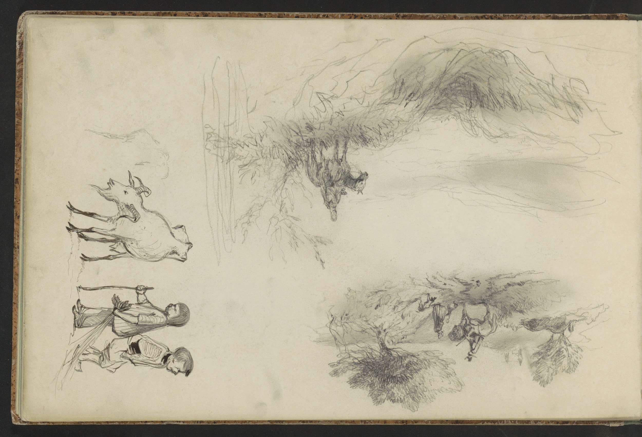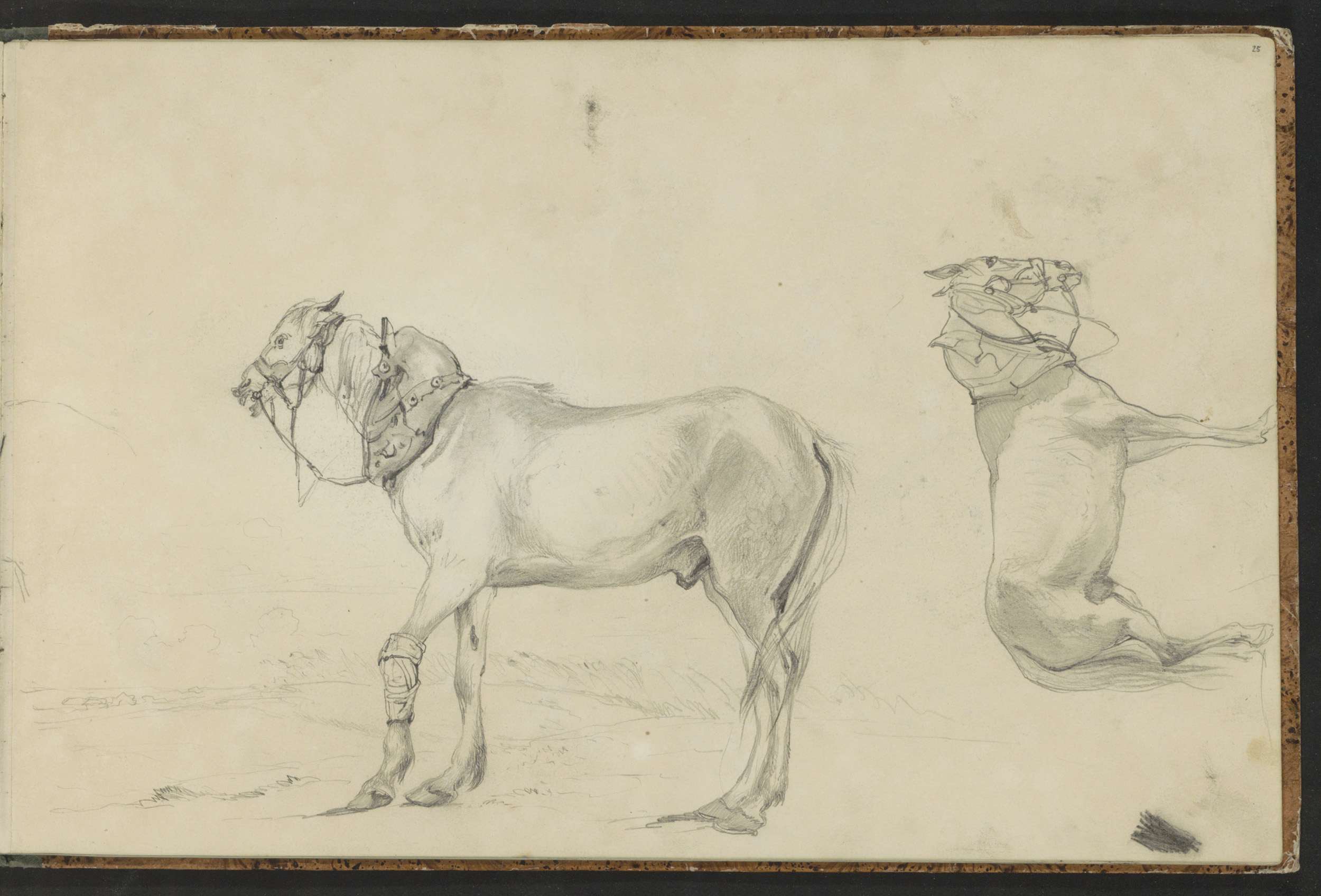 Vrouwen- en mannenfiguren, honden, paarden en een ru...