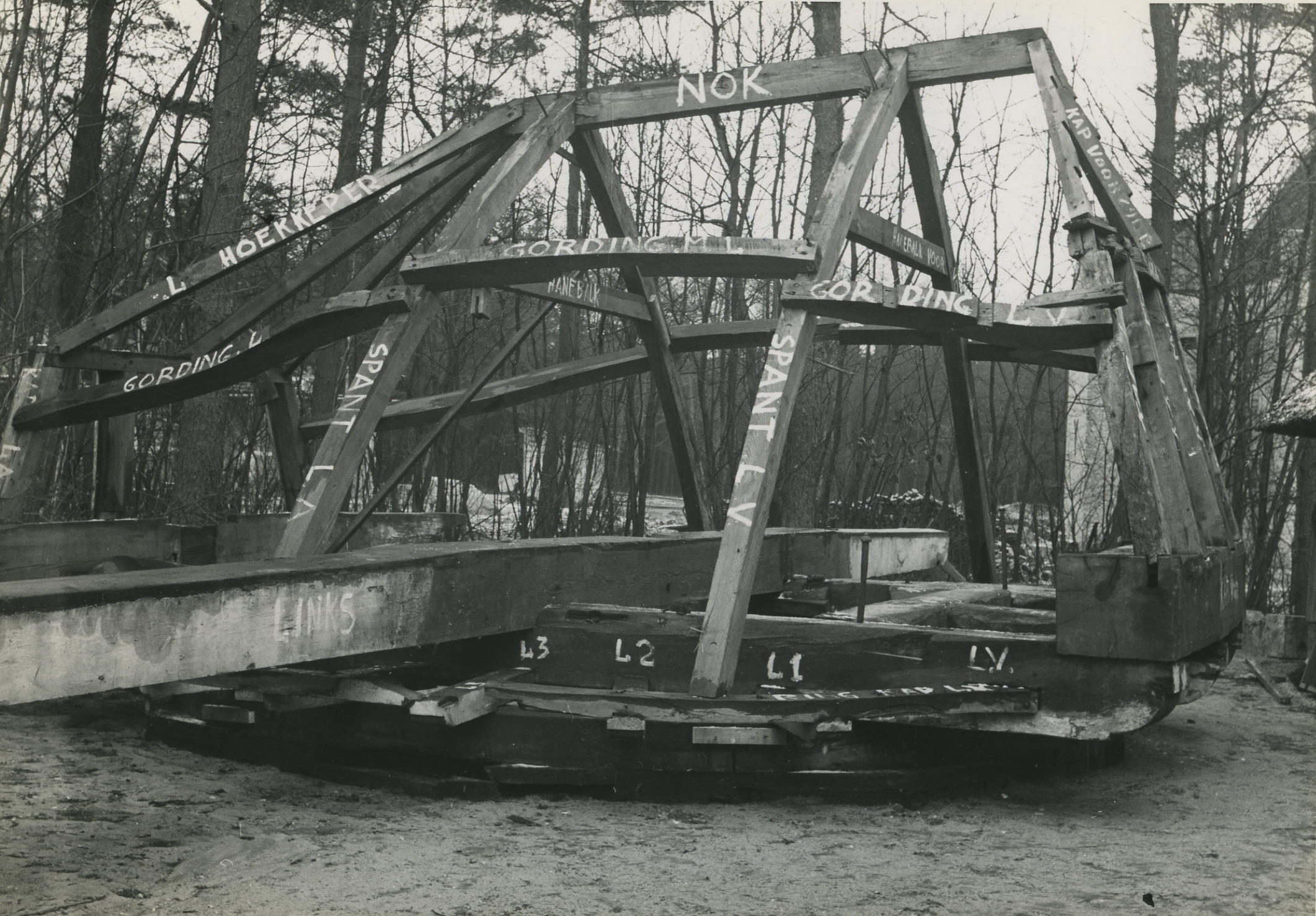 Herbouw van een poldermolen uit Noordlaren in het Ne...
