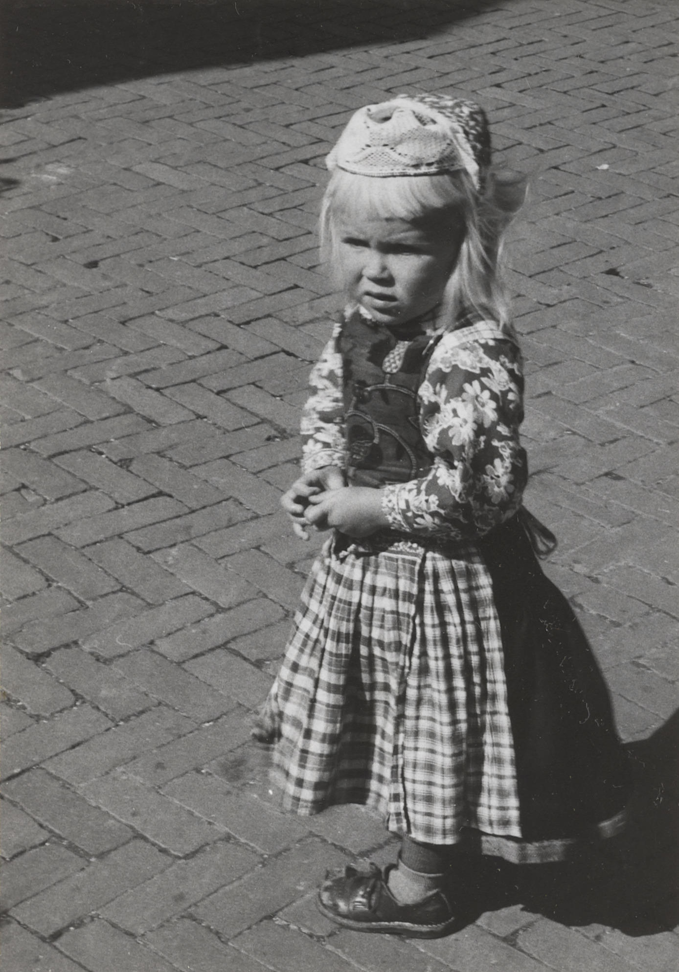 Meisje in streekdracht, Marken, 1957 (zwart-wit foto)