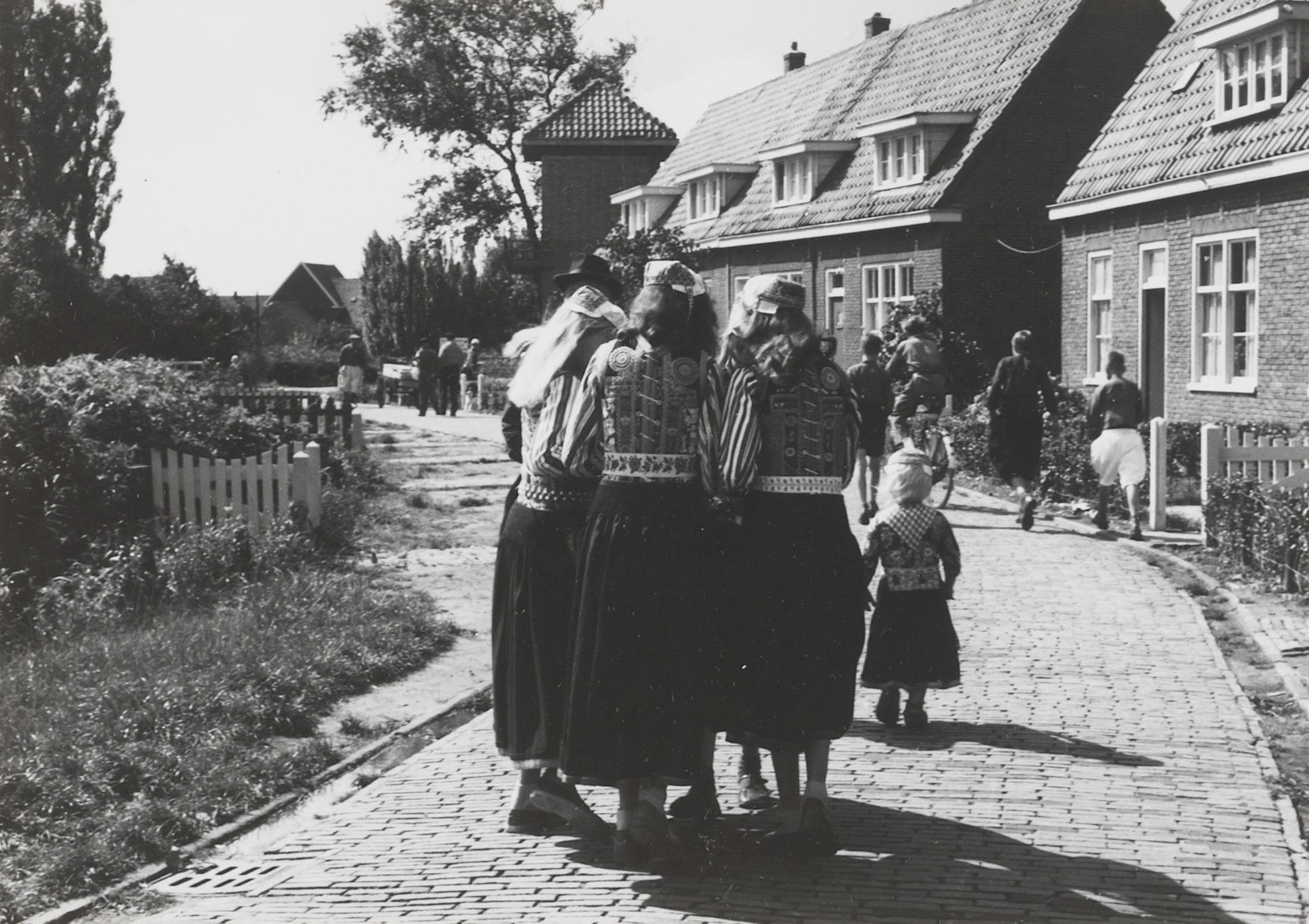 Vrouwen en kinderen in Marker dracht, 1957 (zwart-wi...