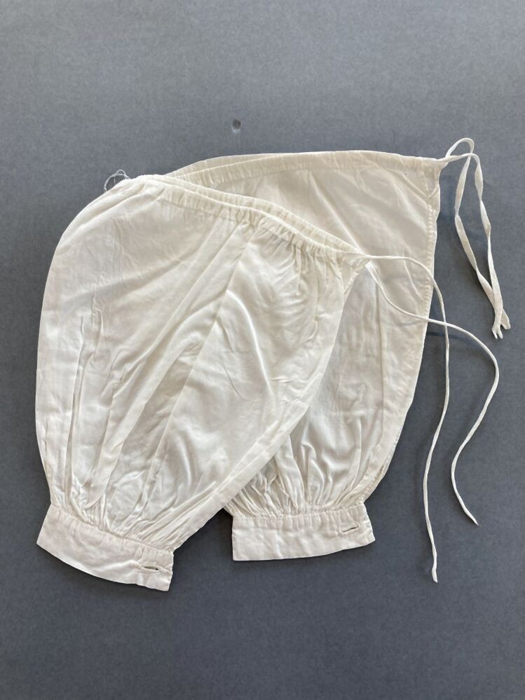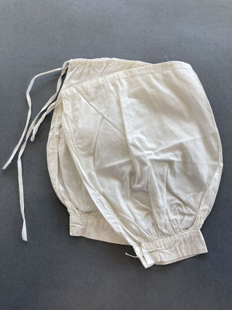 Paar lange kousen van dun wit tricot genaaid voor de...