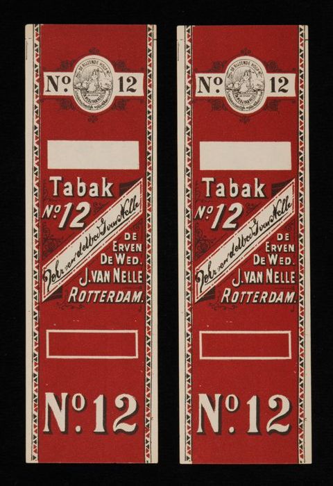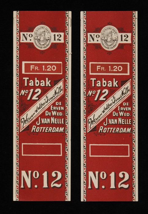 Twee donkerrode labels VAN NELLE TABAK, No. 12, fr. ...
