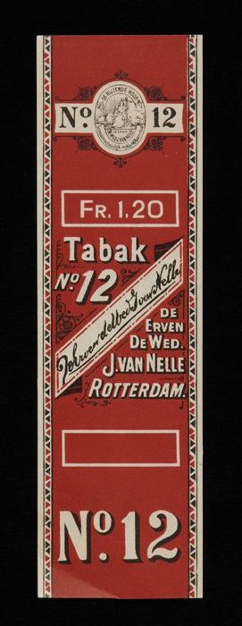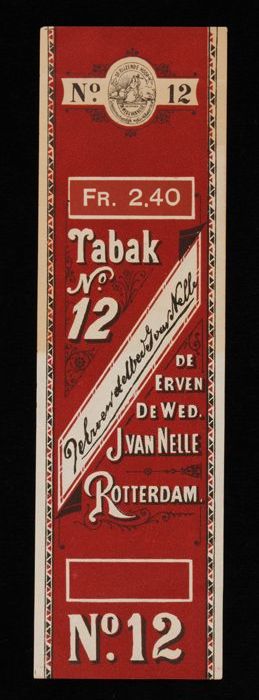 Donkerrood label VAN NELLE TABAK, No. 12, fr. 2,40