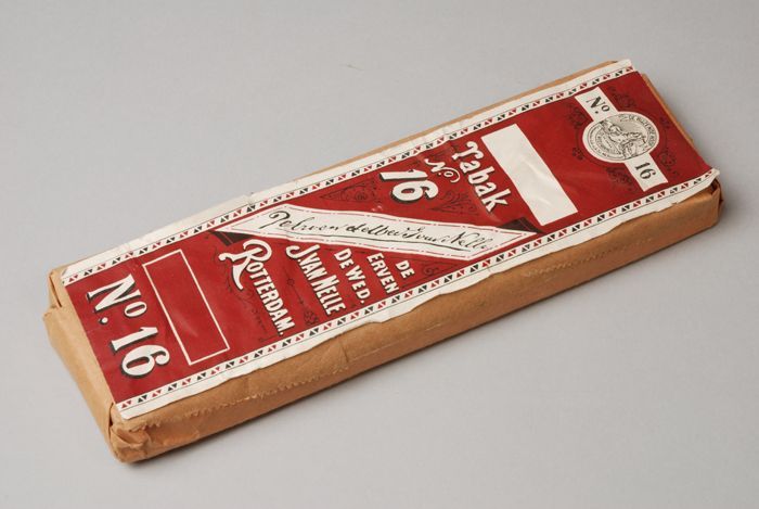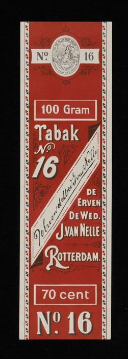 Donkerrood label VAN NELLE TABAK, No. 16, 100 gram, 70¢