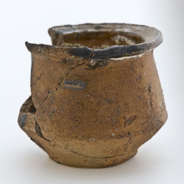 Aardewerk zalfpot, dubbel conisch model met uitstaan...