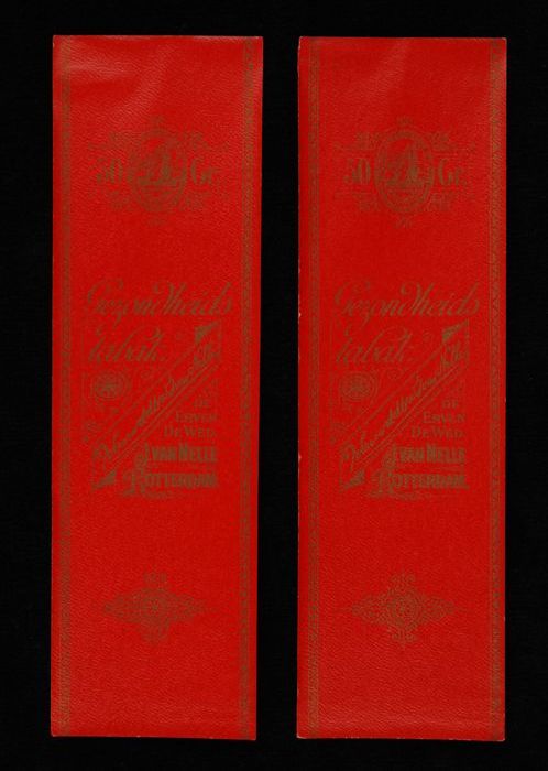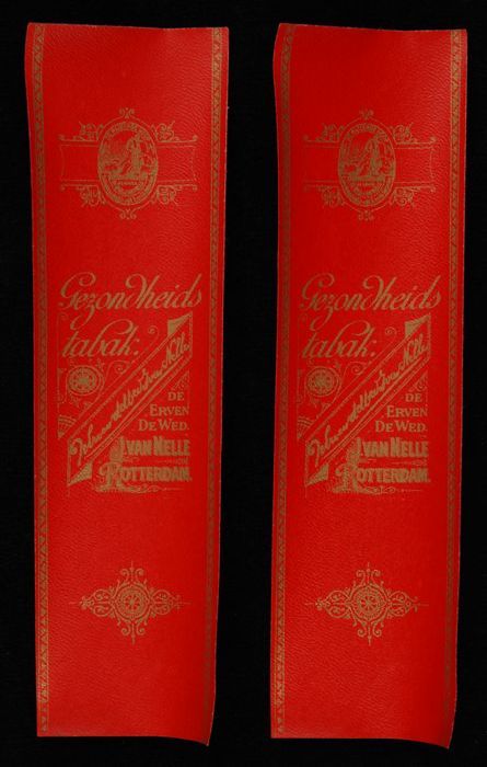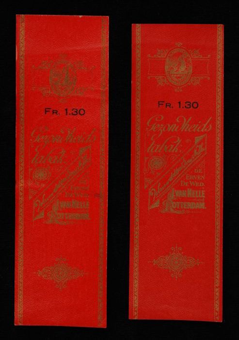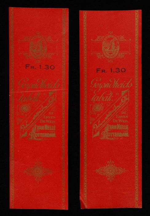Twee rode labels VAN NELLE GEZONDHEIDSTABAK, fr. 1,30