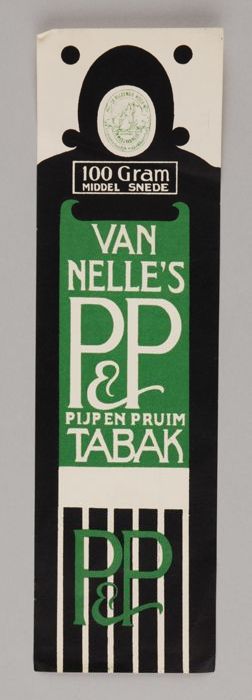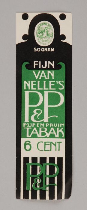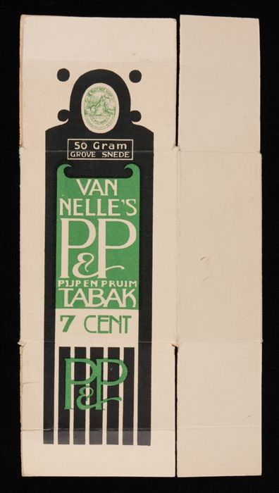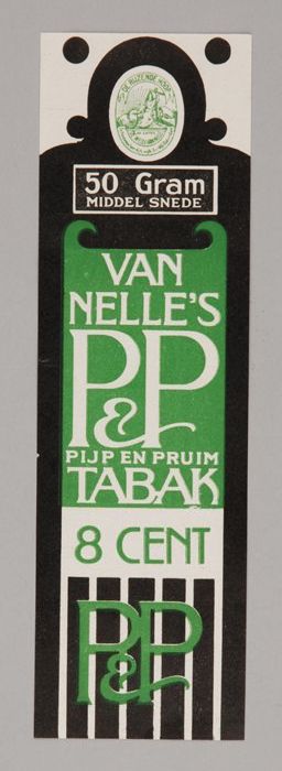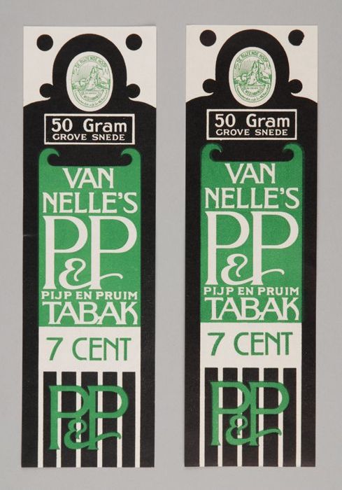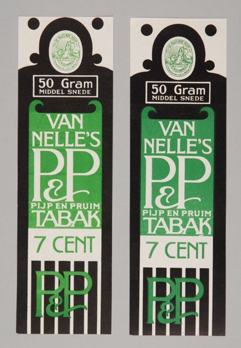 Twee groene labels VAN NELLE'S P&P TABAK, 50 gram, 7¢