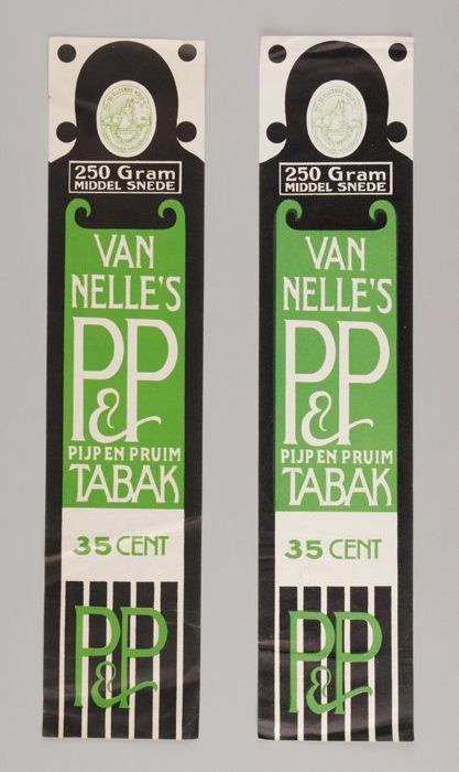Twee groene labels VAN NELLE'S P&P TABAK, 250 gram, 35¢