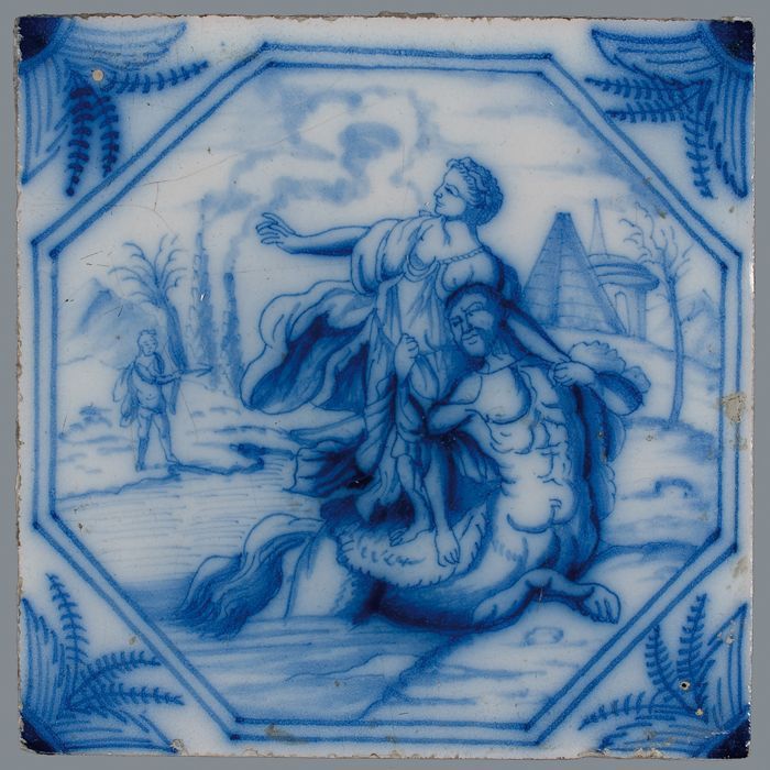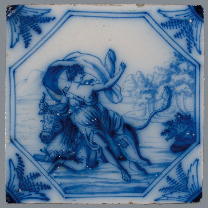 Tegel met mythologisch tafereel voorstellende Europa...