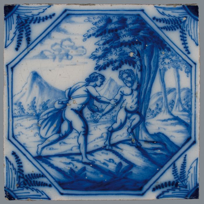 Tegel met mythologisch tafereel voorstellende de roo...