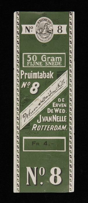 Groen label VAN NELLE PRUIMTABAK, No. 8, 50 gram, fr...