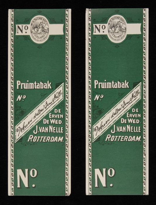 Twee groene labels VAN NELLE PRUIMTABAK