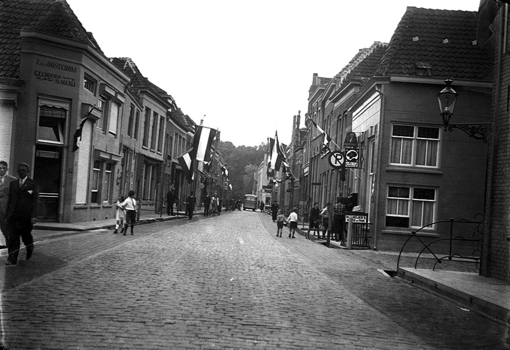Straatgezicht richting Bossche Poort, vlaggen hangen...