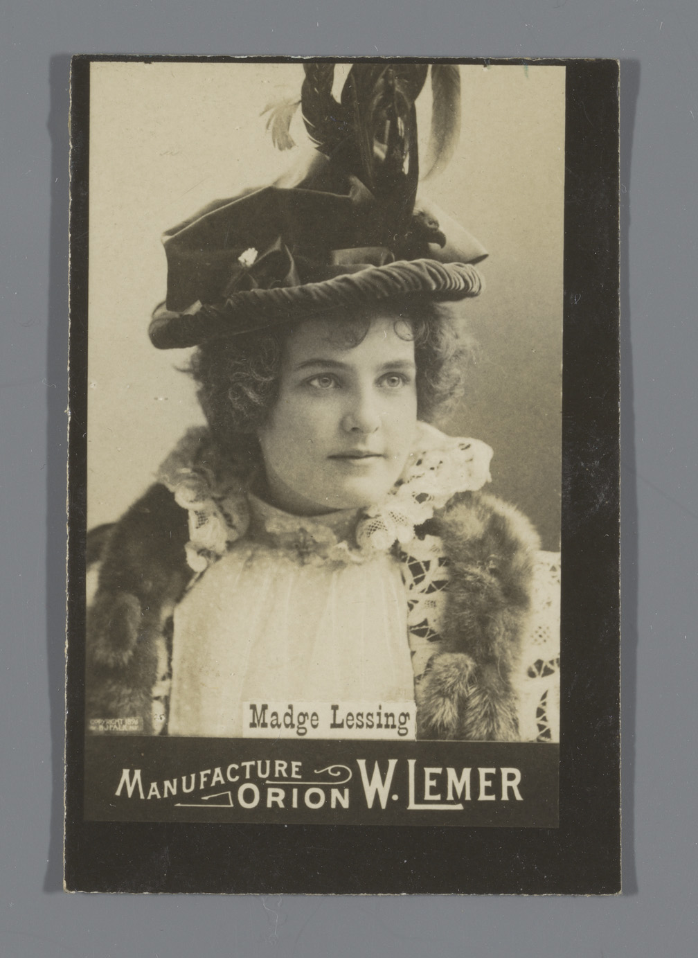 Portret van Madge Lessing, reclame voor Orion W. Lemer