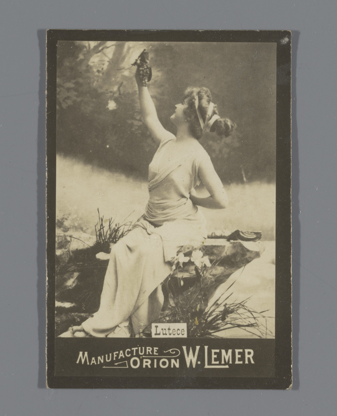 Portret van een vrouw aangeduid als Lutece, reclame ...