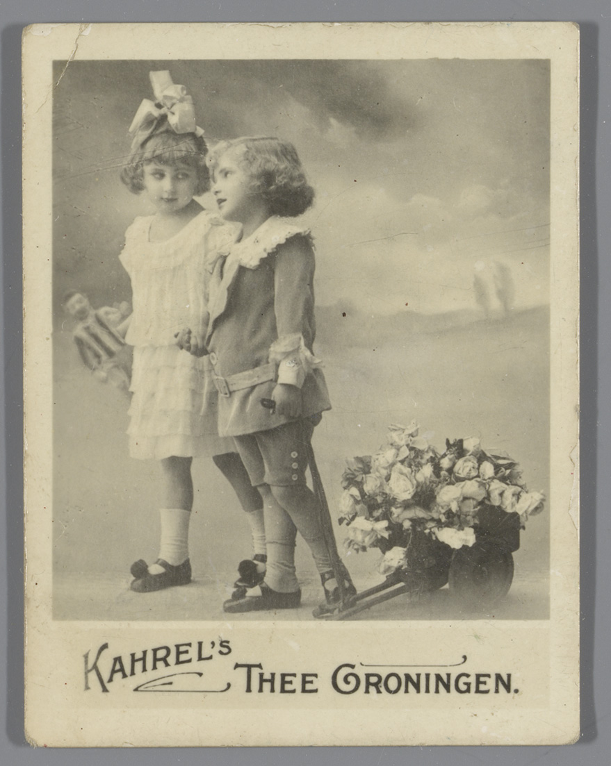 Twee kinderen met speelgoed, reclame voor Kahrel's T...