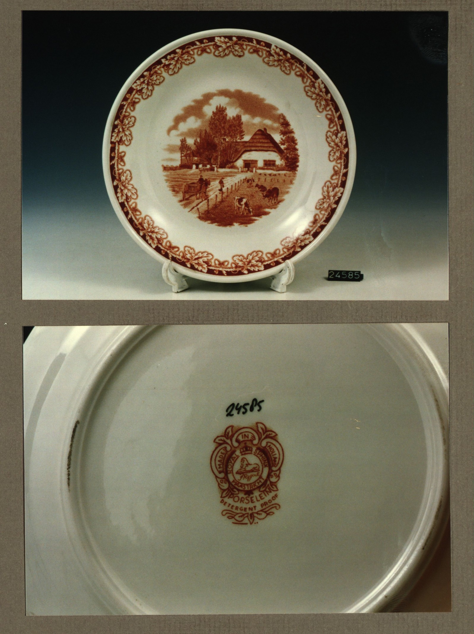 Plat bord, model H met decor Boerenhoeve