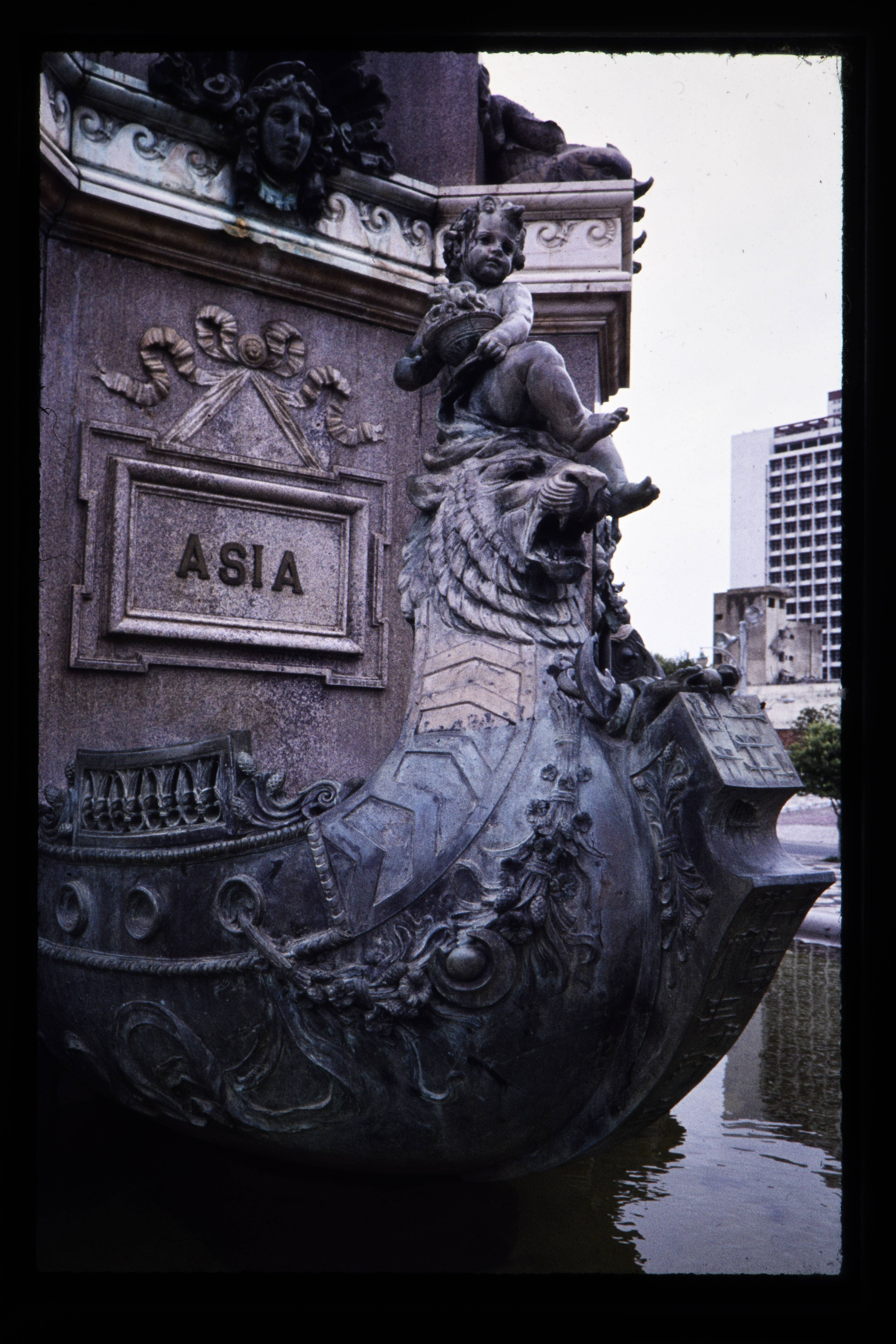 'Details van standbeeld op het plein.'