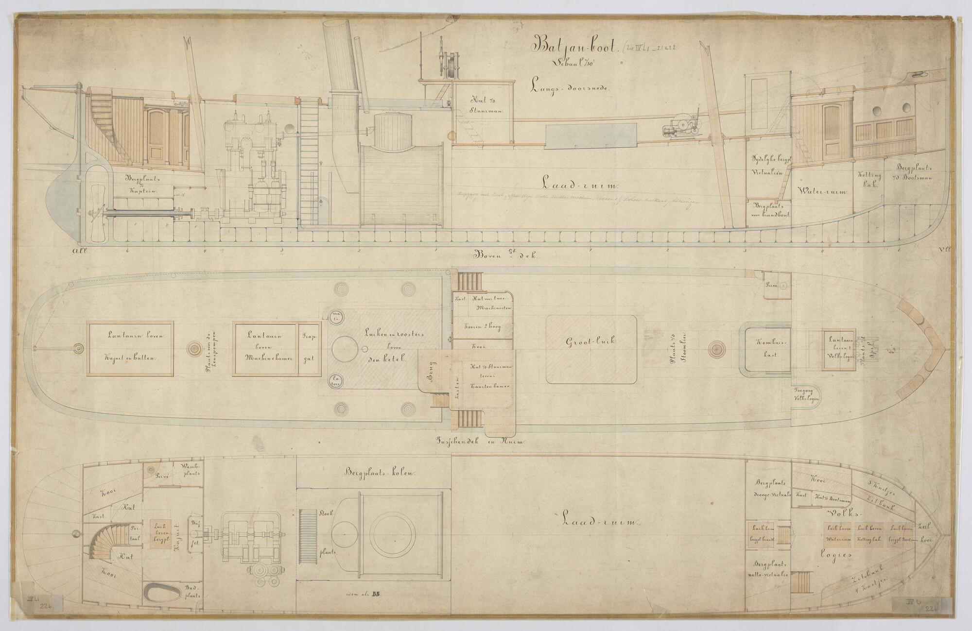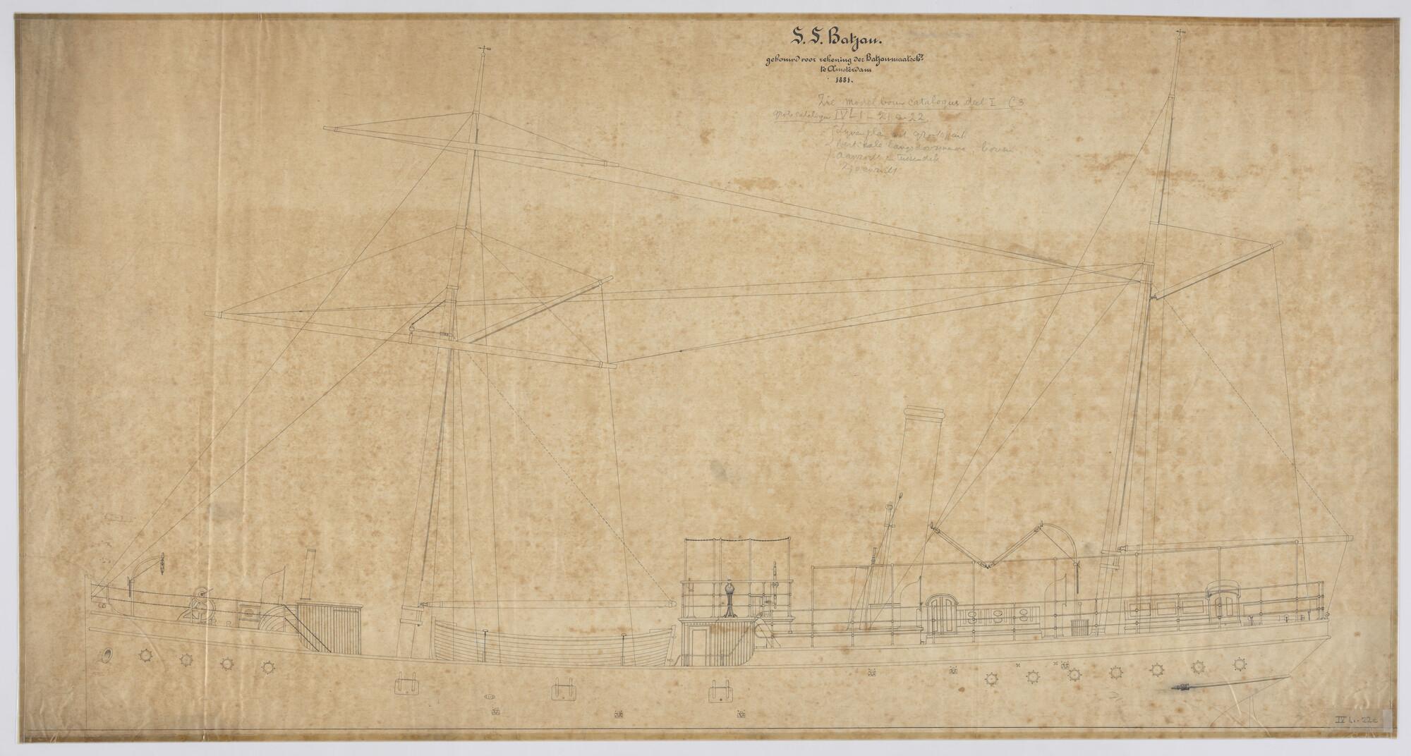 Zijaanzicht van een schroefstoomschip der Batjan Maa...
