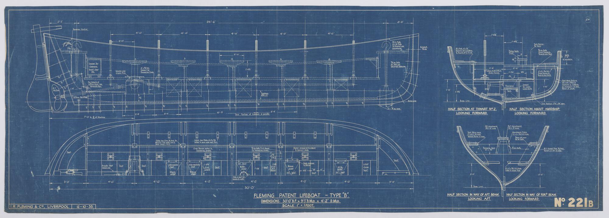 Lijnenplan, spantenraam, en voornaamste gegevens.