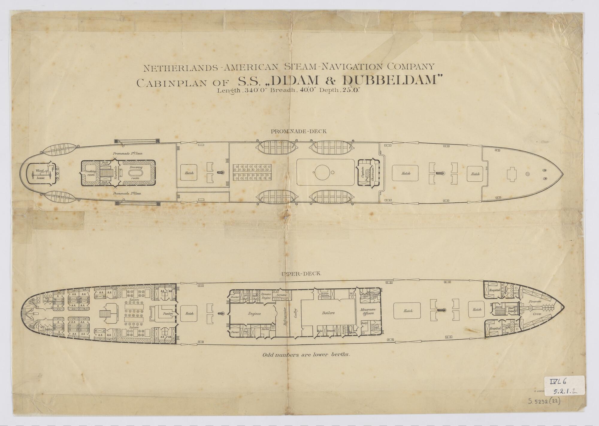 Verticale langsdoorsnede, bovenaanzicht, plan dekbep...