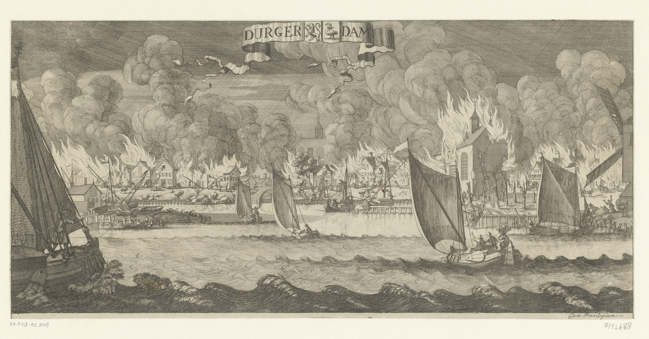 Vloot van negen schepen vertrekkend van Amsterdam na...