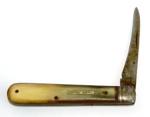 Mes. Zakmesje in de vorm van een schoen met grote hak.