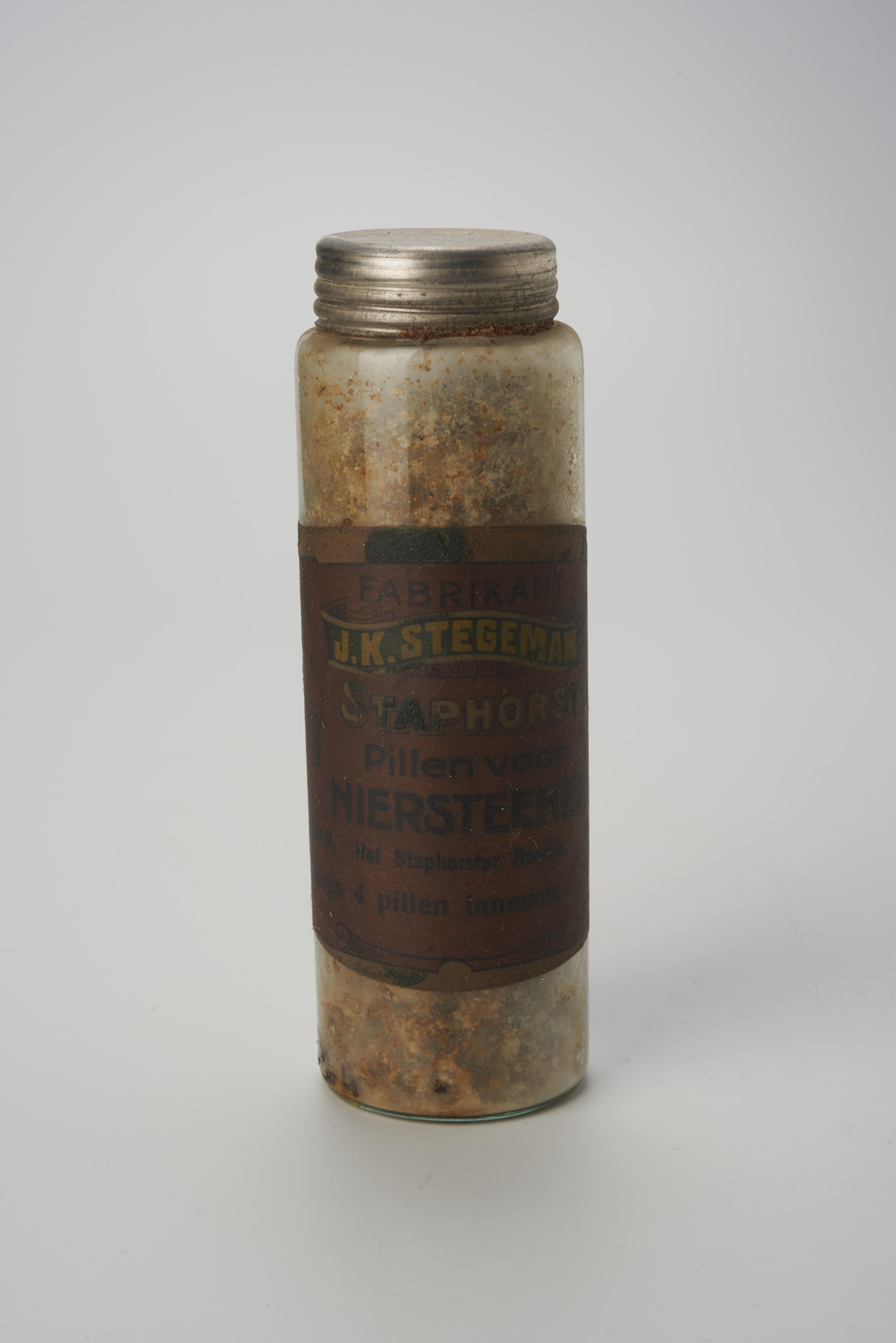 Flesje met pillen tegen nierstenen, Staphorst, circa...