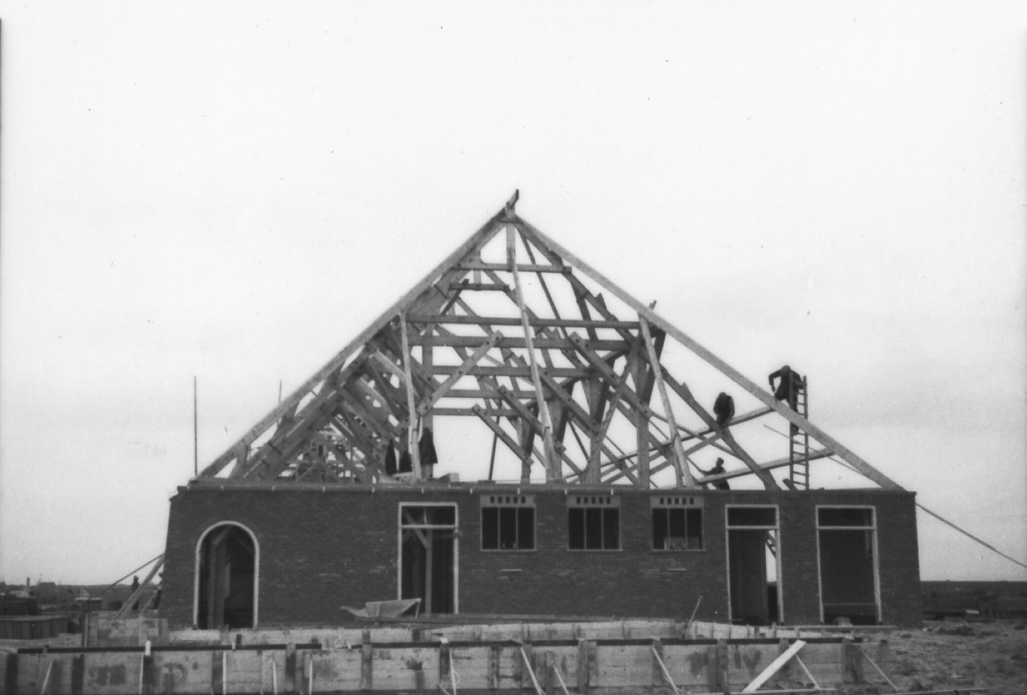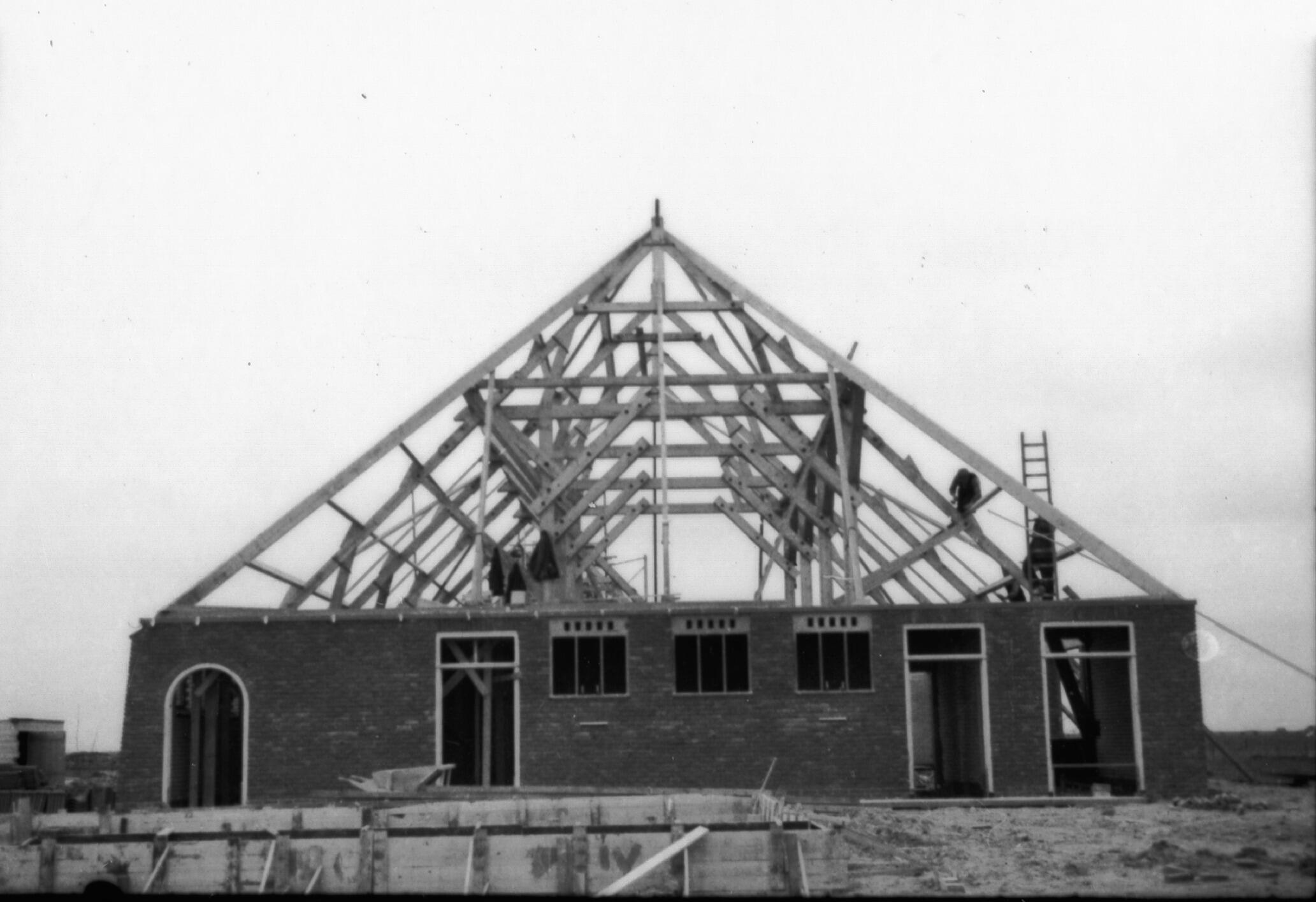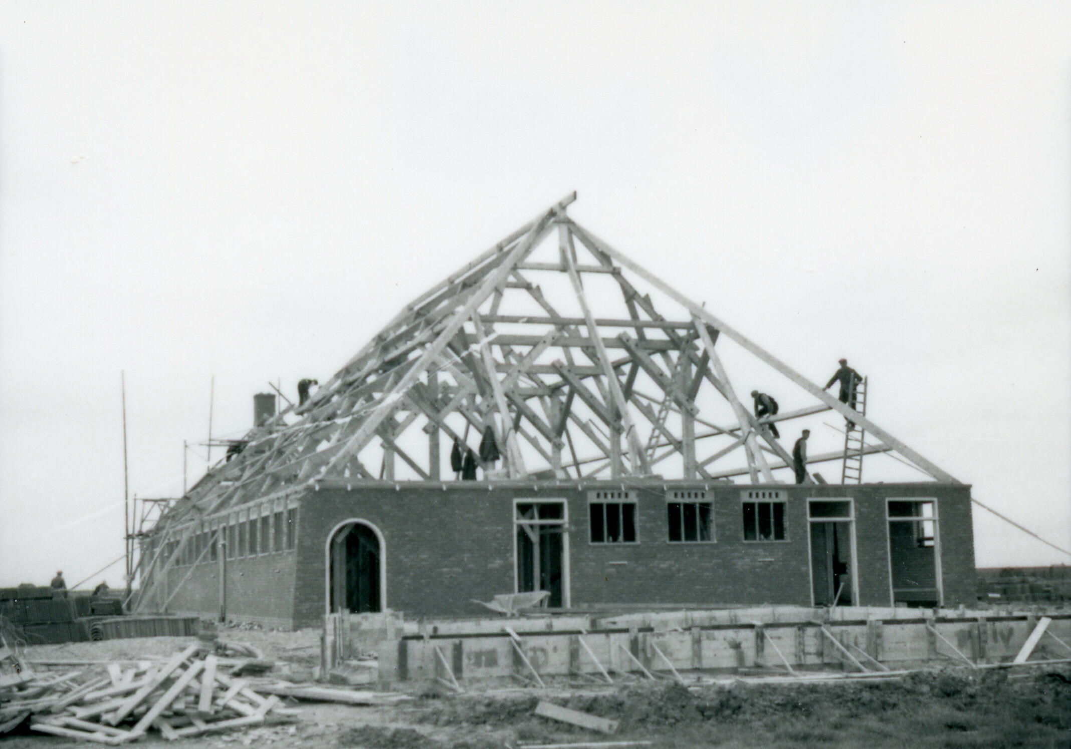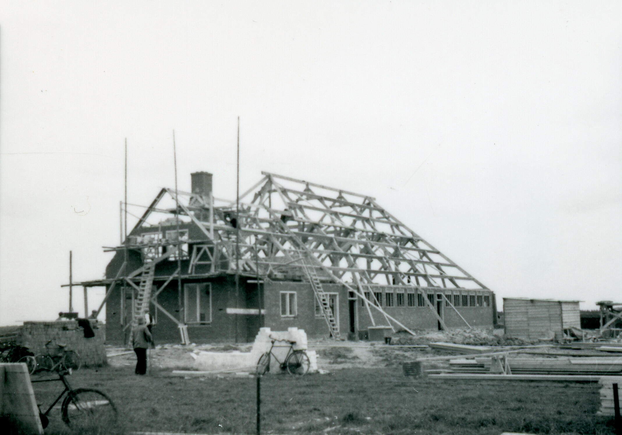 Bouw van een dak van een boerderij, Wieringermeer, 1...