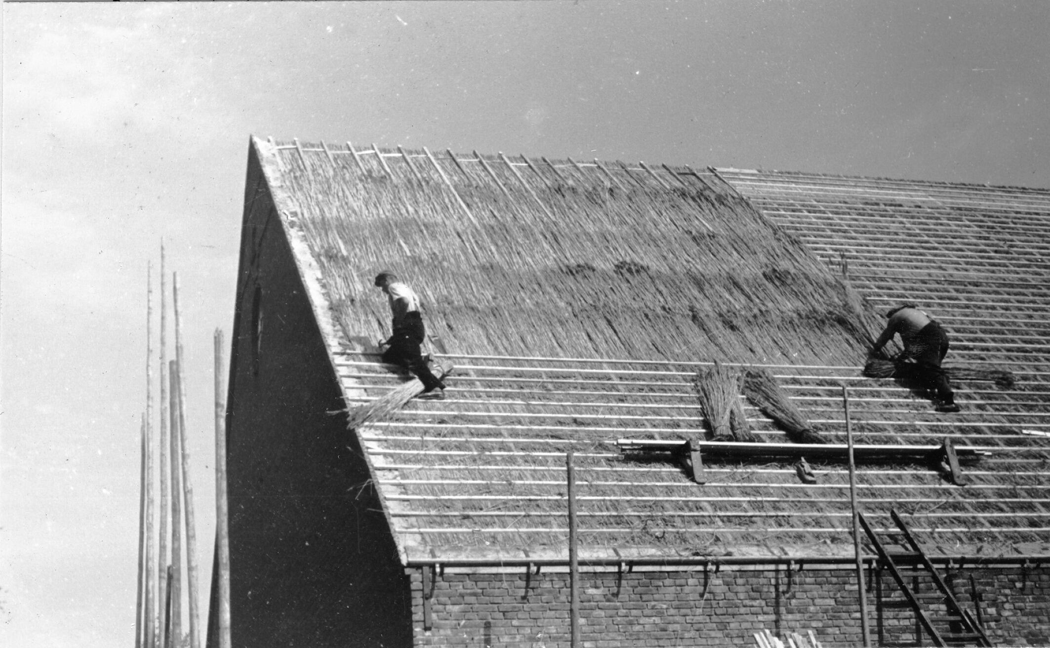 Dekken van een rieten dak, Ridderkerk, 1936 (zwart-w...