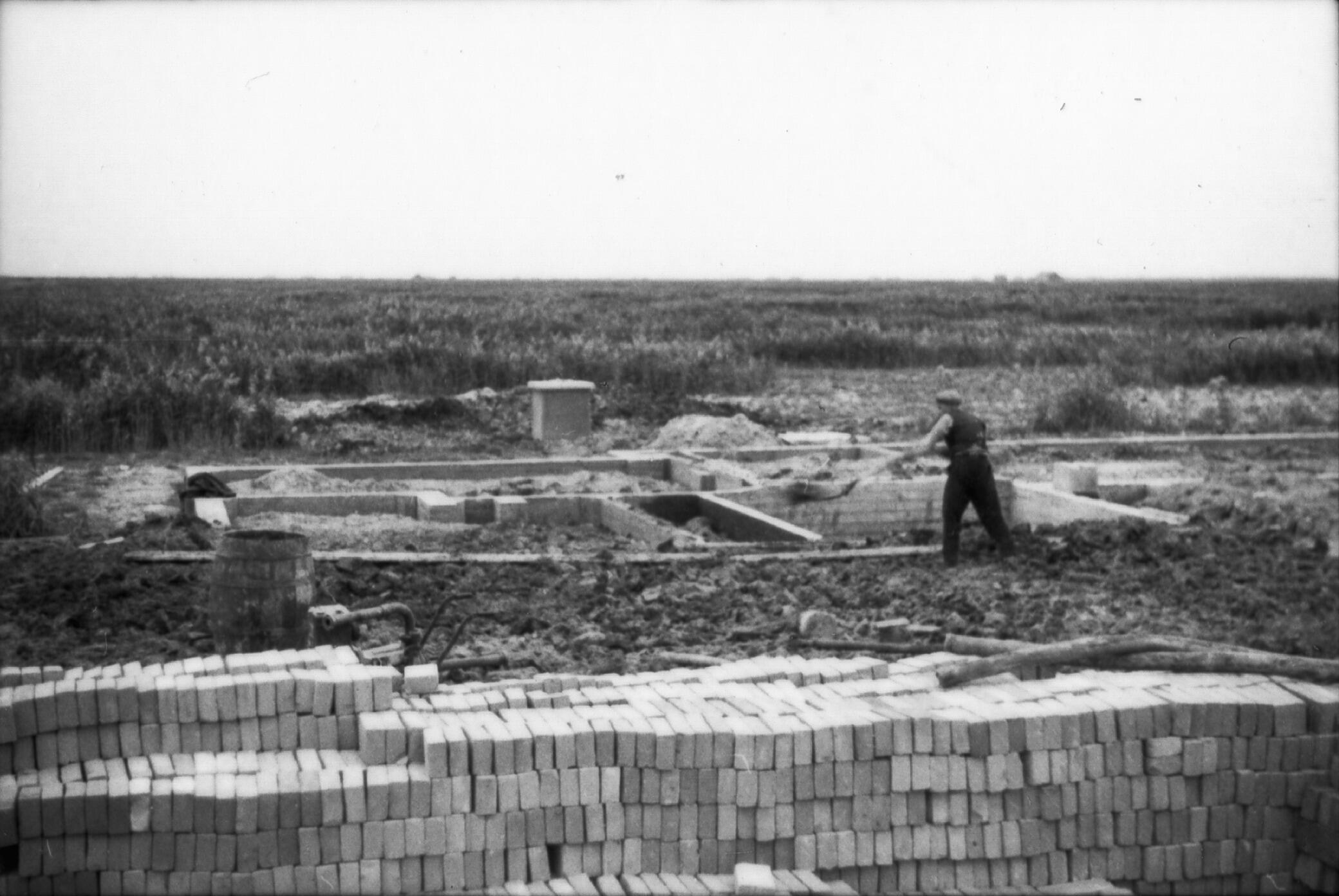 Betonnen fundering van een boerderij, Wieringermeer,...