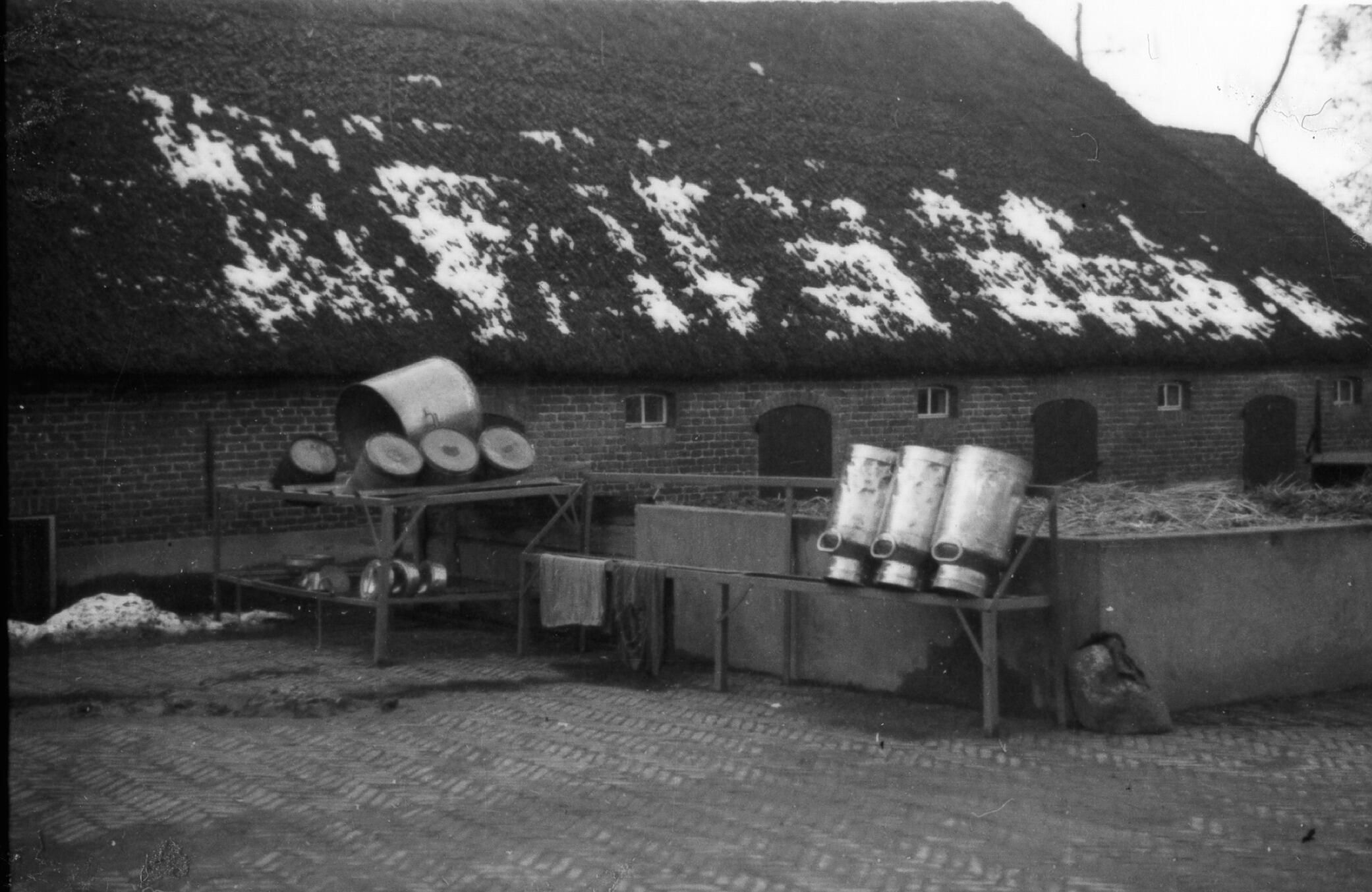 Melkbussenrek, Hoge Hexel, 1937 (zwart-wit foto)