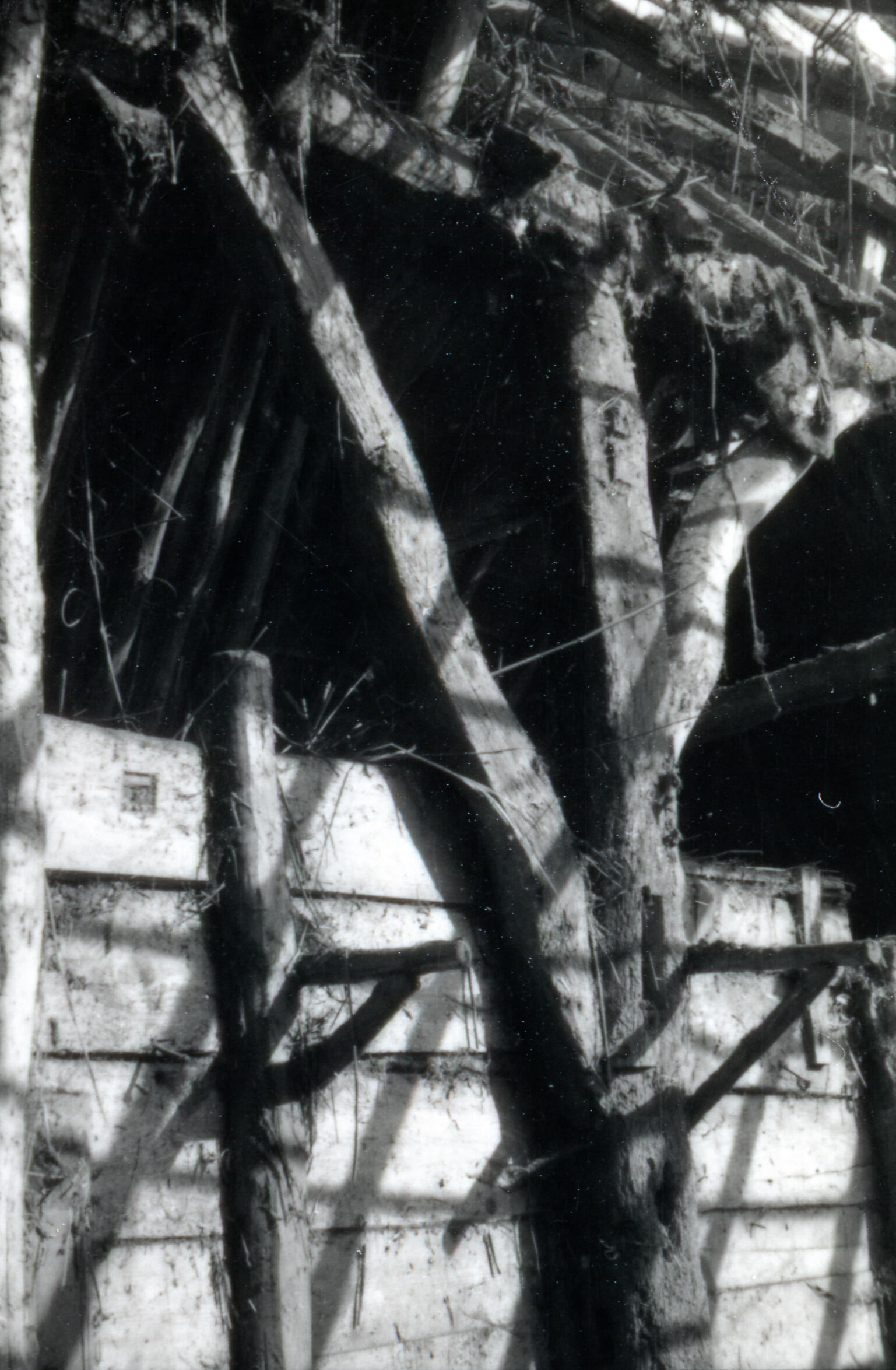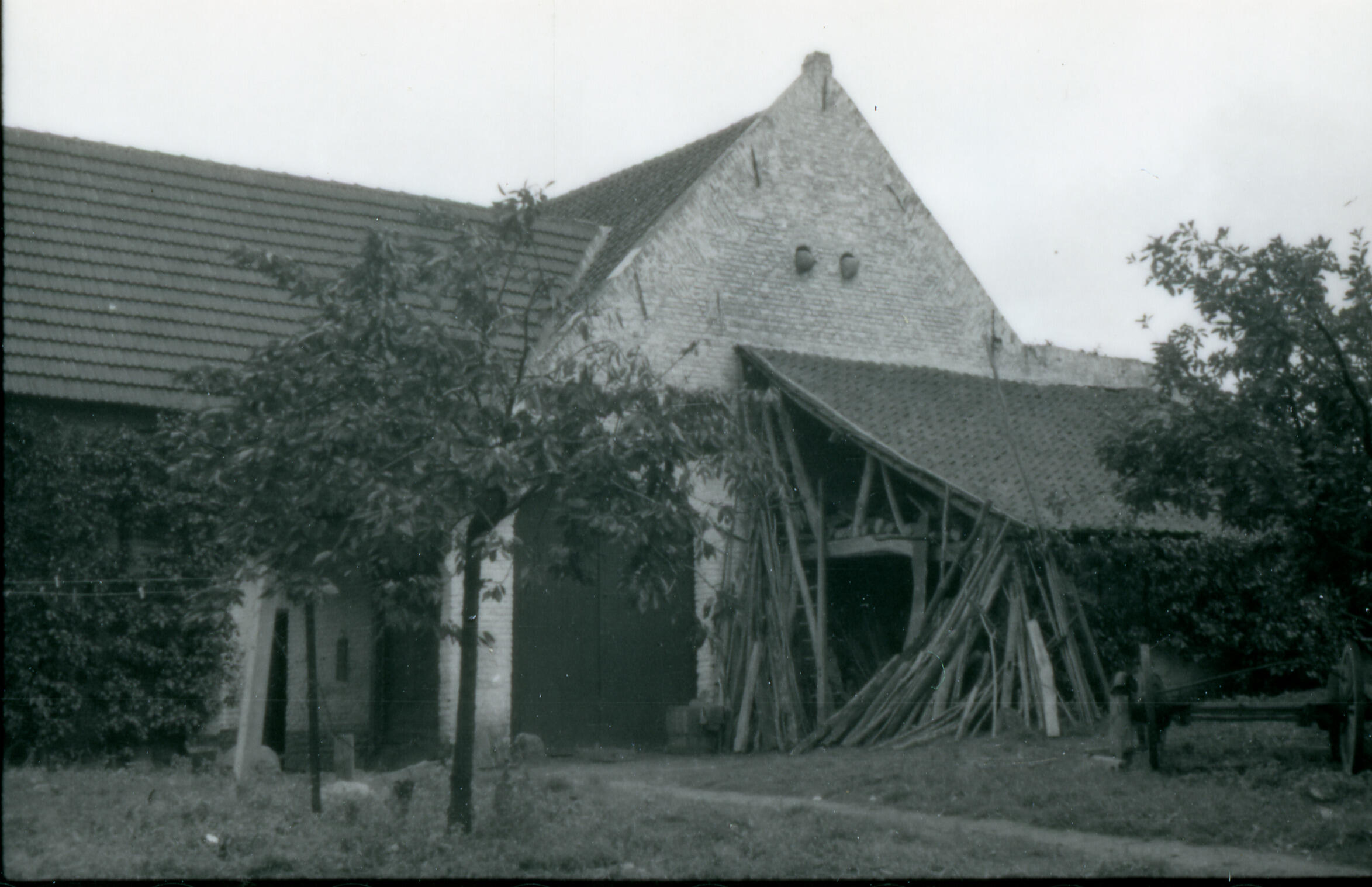 Gebint van een schuur, Bavel, 1940 (zwart-wit foto)