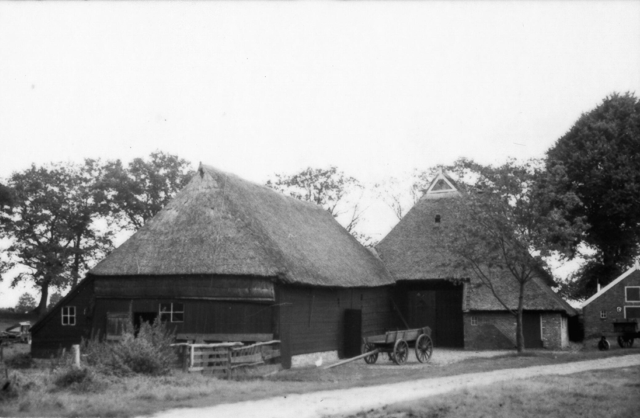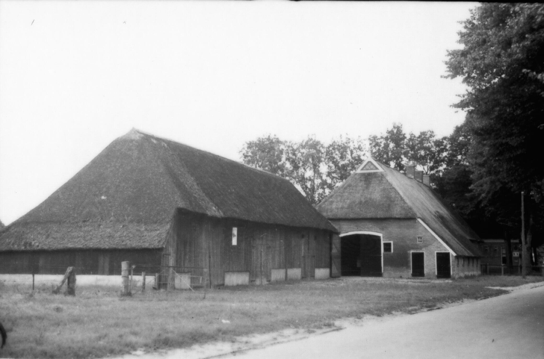 Boerderij en bijschuur, Hooghalen, 1940 (zwart-wit n...
