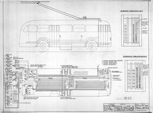 Schema van de loop der kabels, trolliebus met Oerlik...