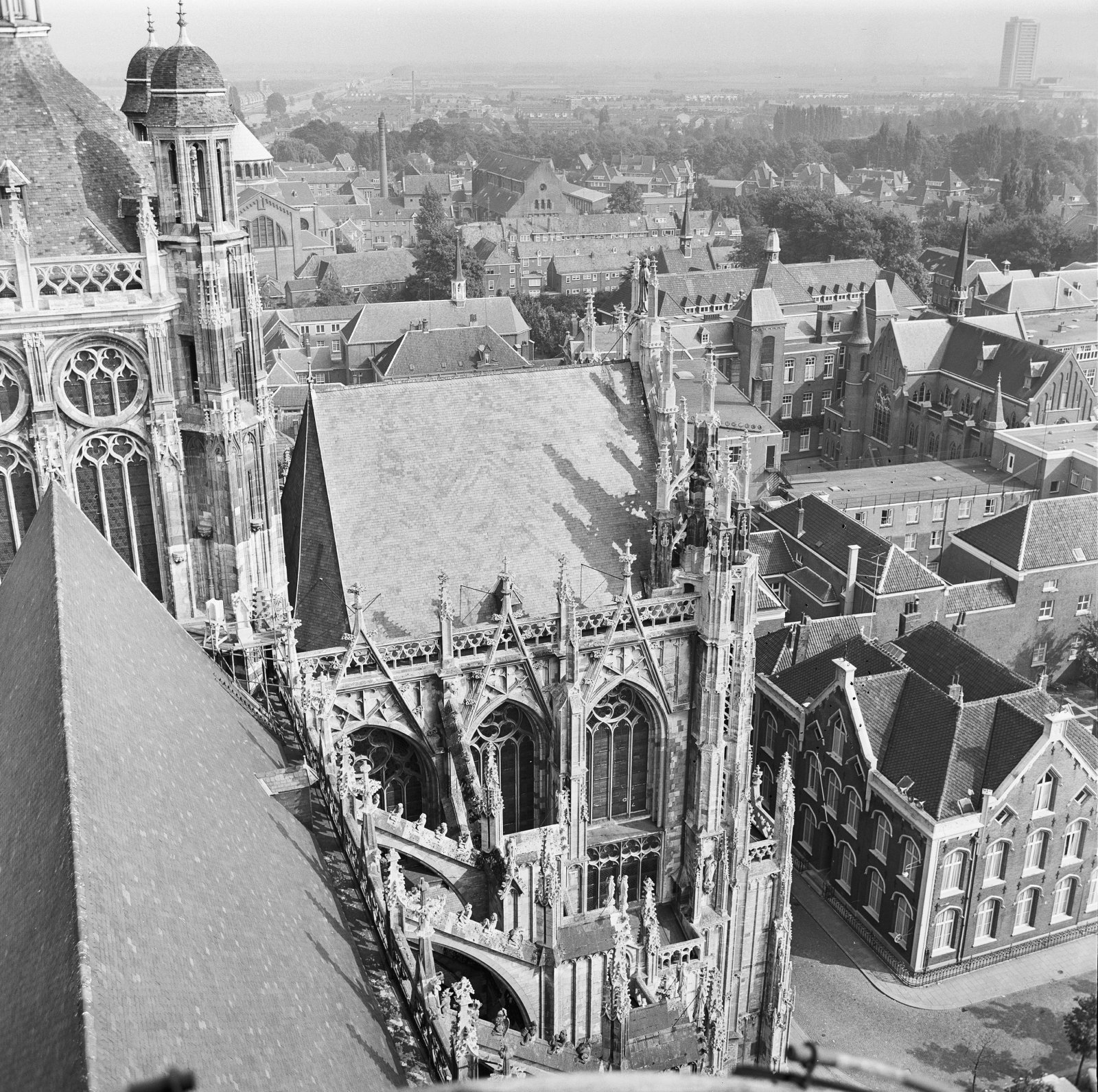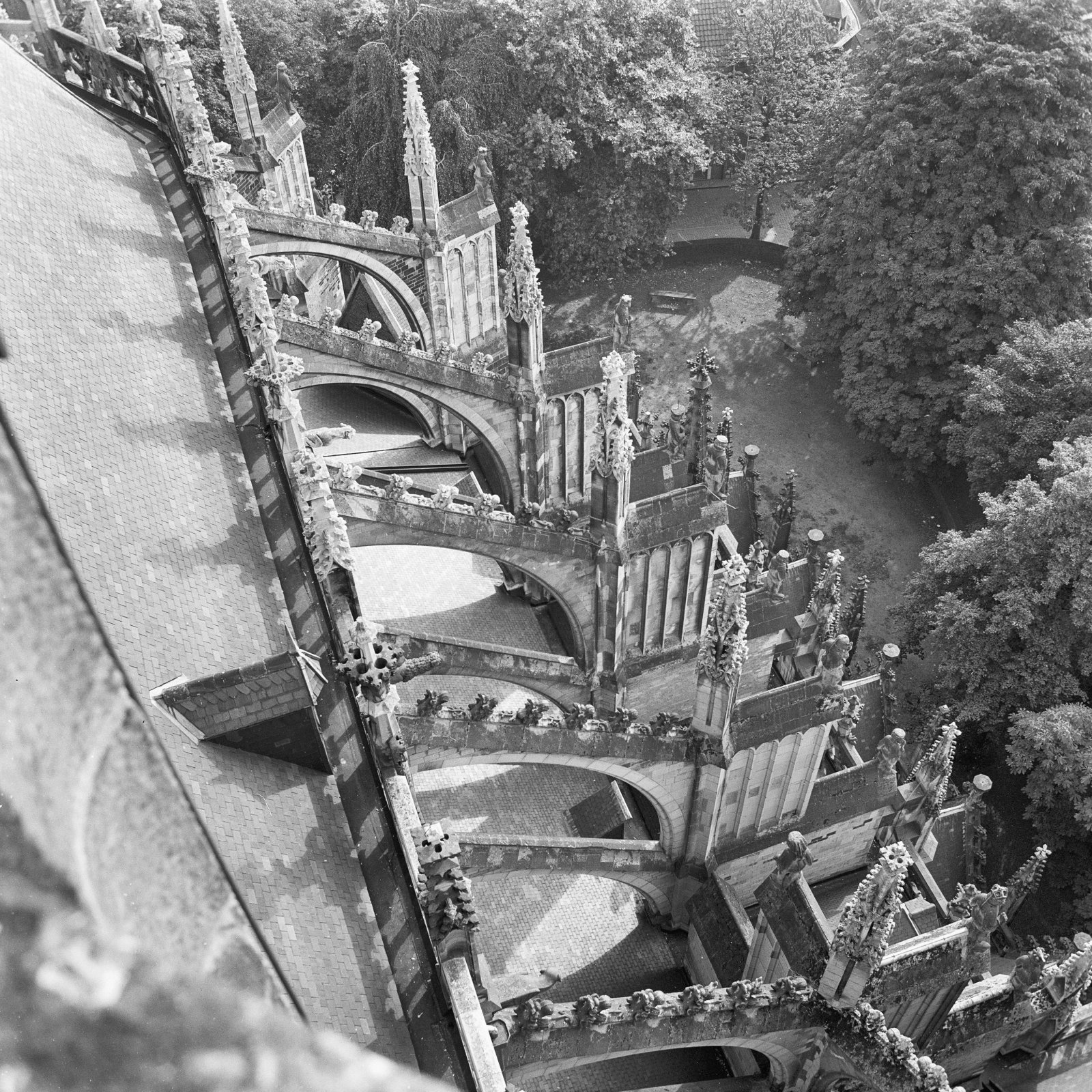 Overzicht van luchtbogen aan de zuidzijde van het schip