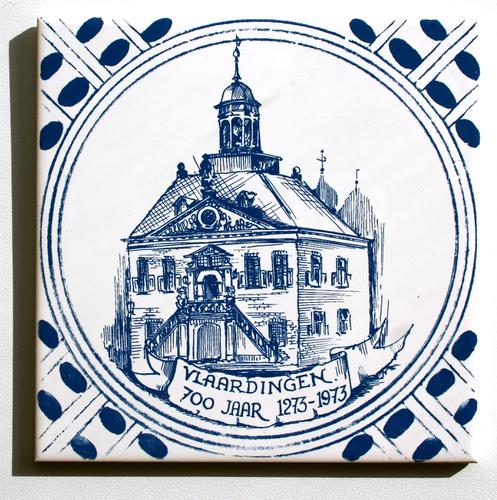 Tegel met Stadhuis Vlaardingen delftsblauw.