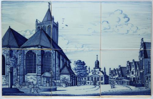 Tegel tableau. Grote Kerk en Stadhuis op de Markt te...
