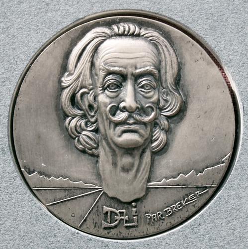 Zilveren ingelijste medaille van Salvador Dali.