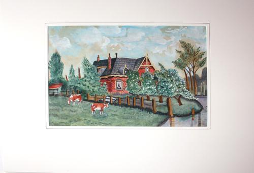 Olieverf op papier. Boerderij Steenhuizen aan de Ket...