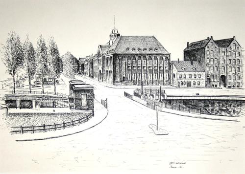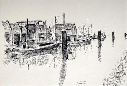 Pentekening. Havenstraat Scheepswerf Figee. Vlaardin...