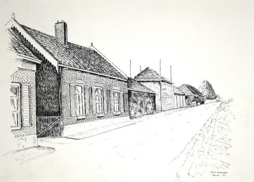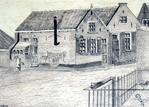 Pentekening. Hoogstraat hoek Pepersteeg Vlaardingen.
