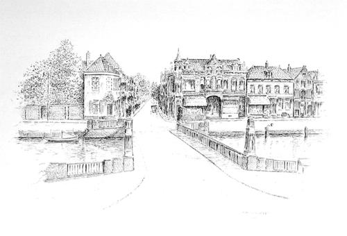 Pentekening. Hofsingel Ziekenhuis Vlaardingen.